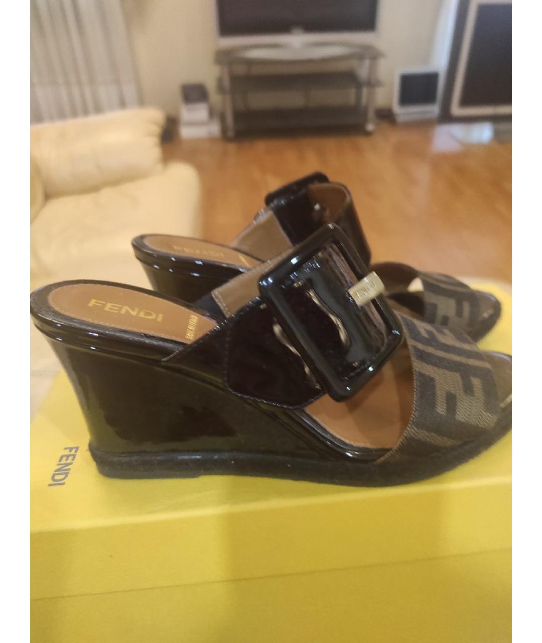 FENDI Черные мюли из лакированной кожи