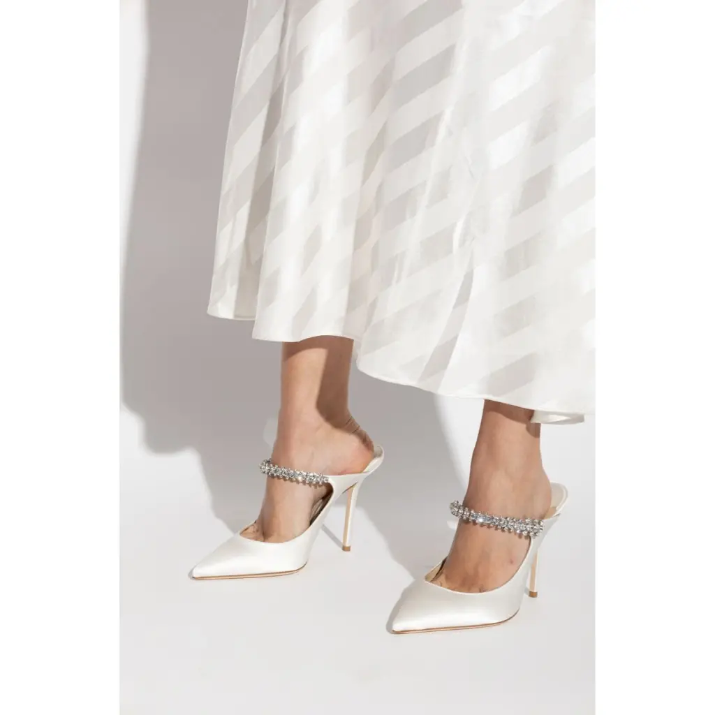 White satin Bing 100 mules . Exterior: 100% Fabric Interior: 100% Leather Sole: Leather