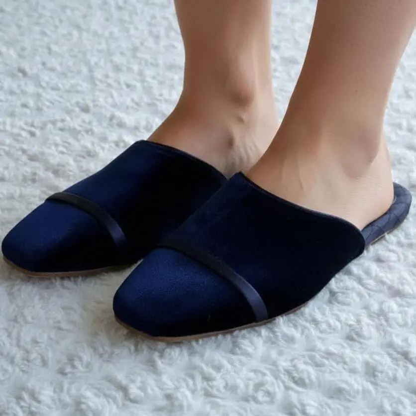MALONE SOULIERS Темно-синие текстильные мюли