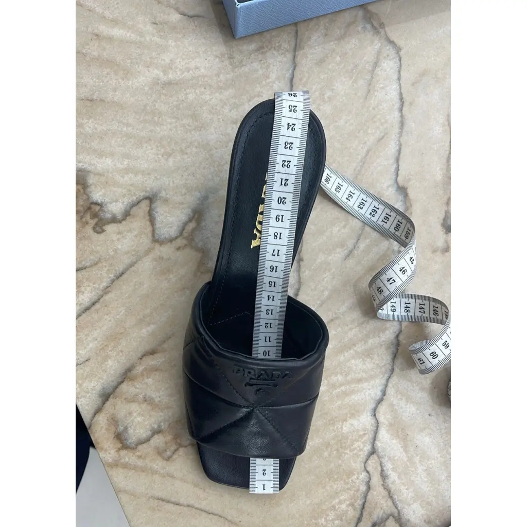 -Черные мюли из мягкой кожи от PRADA. -Модель с квадратным мысом, широкой союзкой со стежкой треугольным мотивом, который повторяет объемный логотип, низким каблуком, стелькой из кожи.