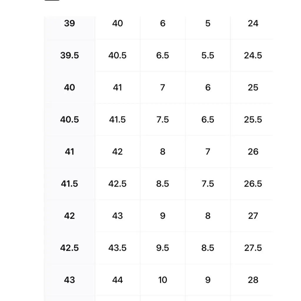 EU 38 39 39,5 40 40,5 41 41,5 42 42,5 43 43,5 44 44,5 45 45,5 46 46,5 47 47,5 48 48,5 49 50 Таблица размеров
