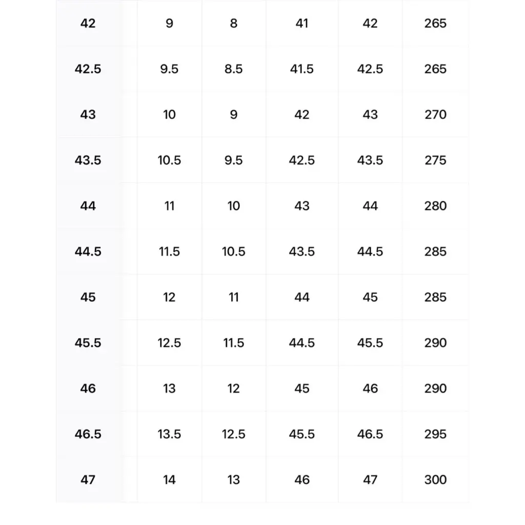 EU 38 39 39,5 40 40,5 41 41,5 42 42,5 43 43,5 44 44,5 45 45,5 46 46,5 47 47,5 48 48,5 49 50 Таблица размеров