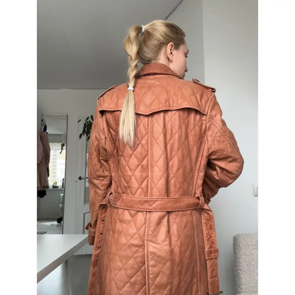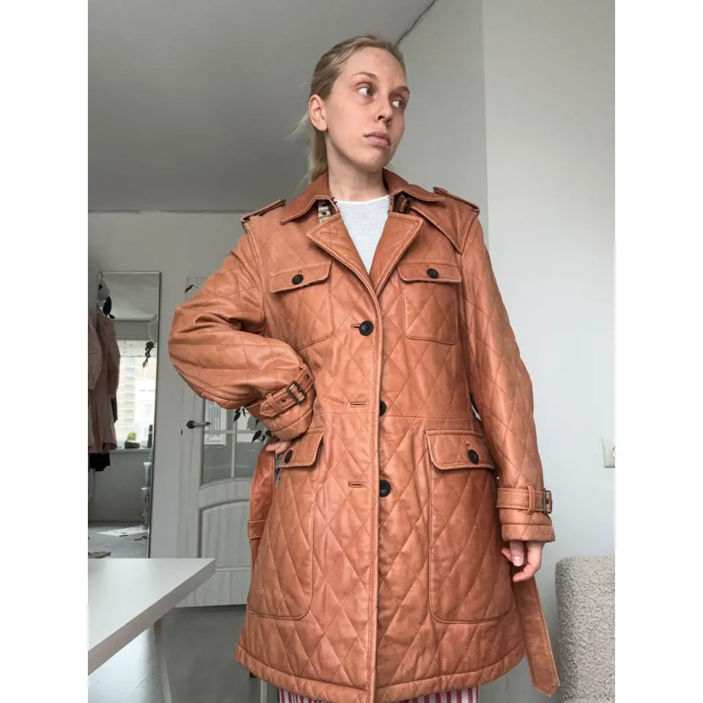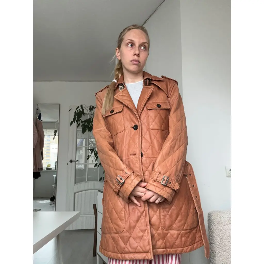 Стеганая куртка Burberry из натуральной кожи с поясом. Ворот отделан кроличим мехом, отстегивается Карманы внутри с флисовой подкладкой Размер M, унисекс