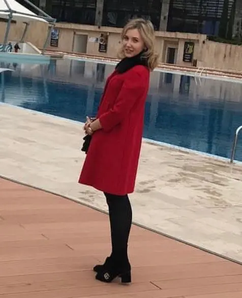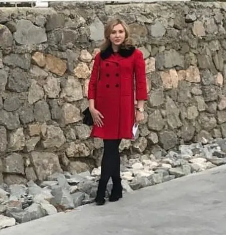 Шерстяное пальто на шелковой подкладке, насыщеннно красного цвета, воротник натуральная норка