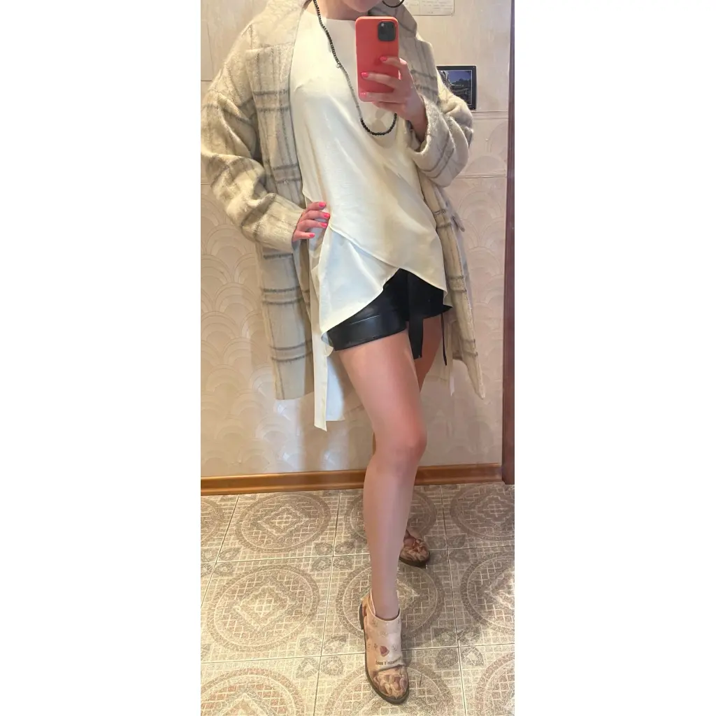 Красивое функциональное демисезонное шерстяное пальто, длина по колено, с большим вырезом под шарф.