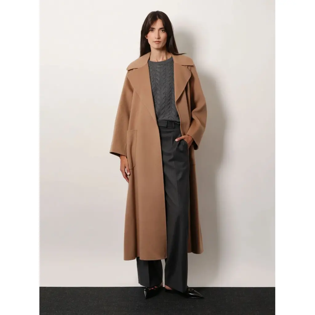 'Doris' long coat in hand-stitched pure wool double fabric with dressing gown style, pockets, long sleeves, back split, unlined, removable belt. *В связи с праздничным периодом сроки доставки могут быть увеличены и составлять до 20–25 рабочих дней