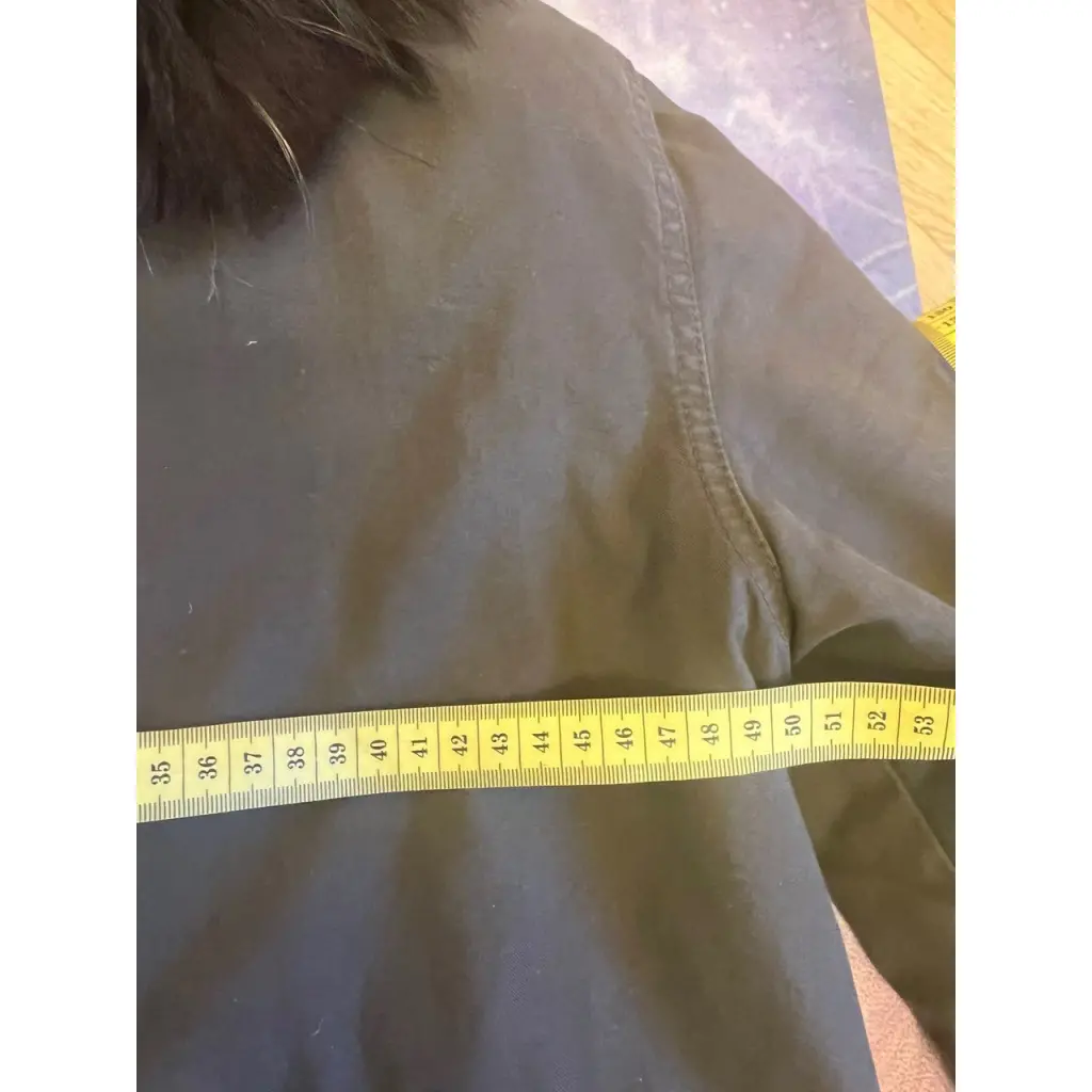 Видимых дефектов нет, в ателье была зашита продранная подмышка после одной неудачной примерки. Не новая, степень износа на фото