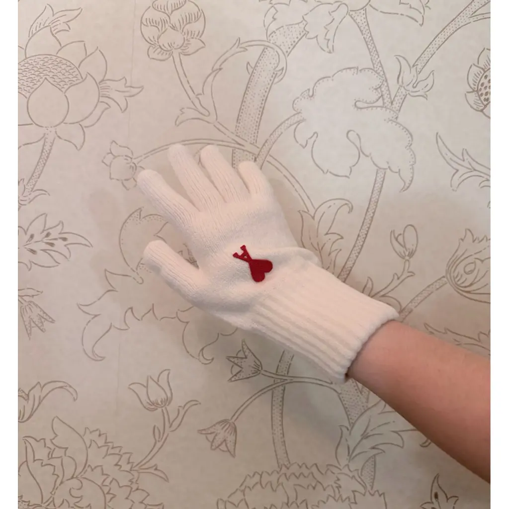 Эти перчатки Ami Paris, изготовленные из роскошной мягкой натуральной шерсти, представлены в классическом белом цвете с фирменной красной надписью Ami de Coeur.