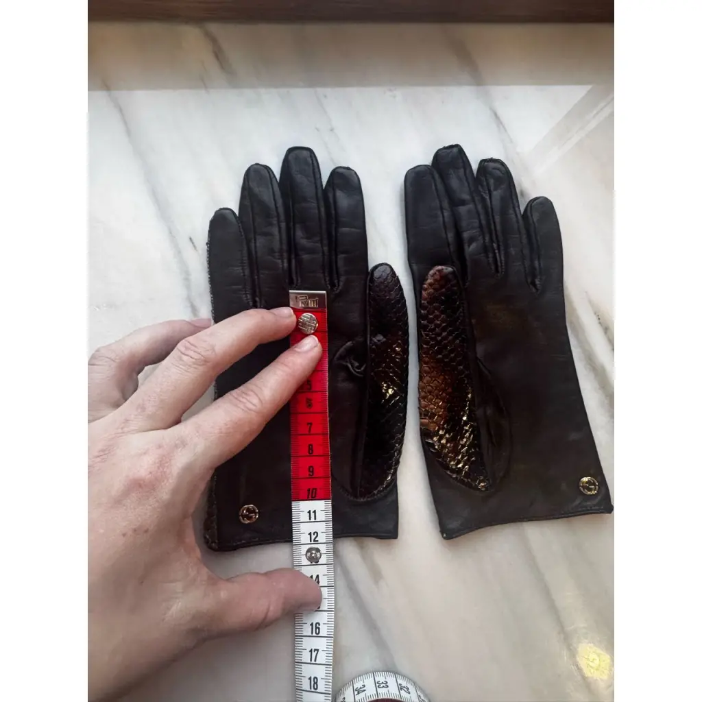 Перчатки Gucci со вставками из кожи питона, размер 7, внешних дефектов нет, в носке пару раз.