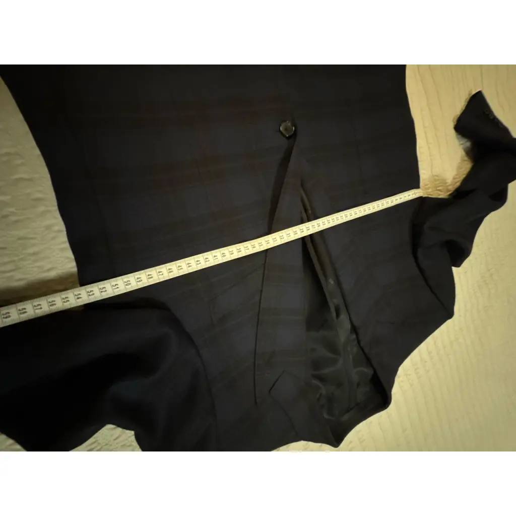 Шерстяной пиджак, тёмно синий , с чёрными полосками , в живую выглядит как просто чёрно -синий .