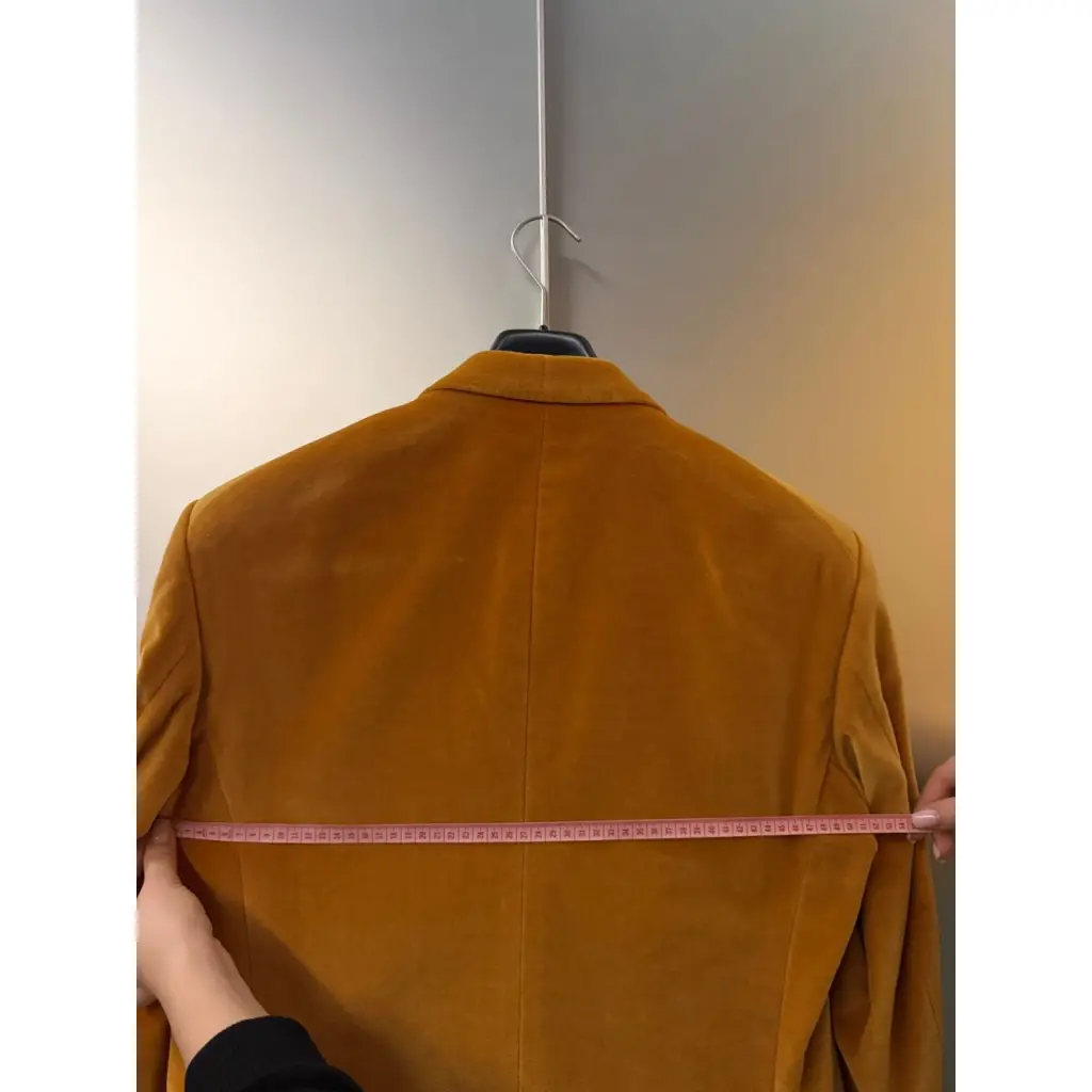 Этот пиджак - воплощение элегантности и индивидуальности. Его насыщенный горчичный оттенок напоминает осенние листья и создает яркий акцент в любом гардеробе. Мягкая фактура вельвета и продуманный силуэт делают его идеальным выбором как для повседневных, так и для торжественных образов.