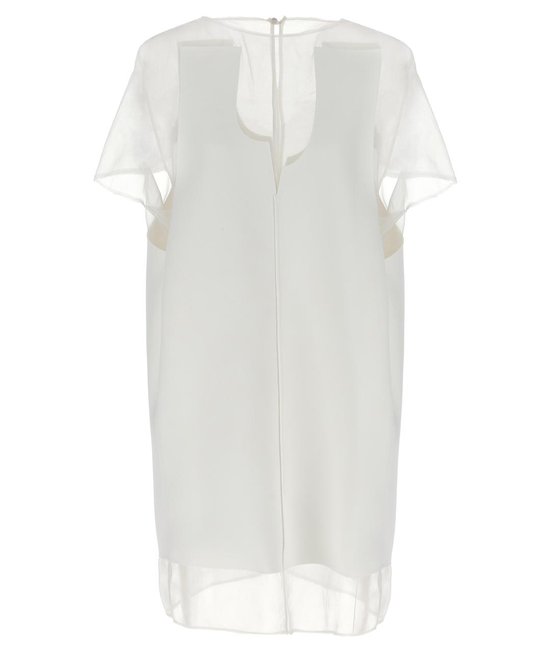 Подписаться Mini 'Winona' dress consisting of a double-sided crêpe panel with rough edges and semi-transparent tulle details, crew neck, short sleeves, back button closure with cut-out teardrop detail.