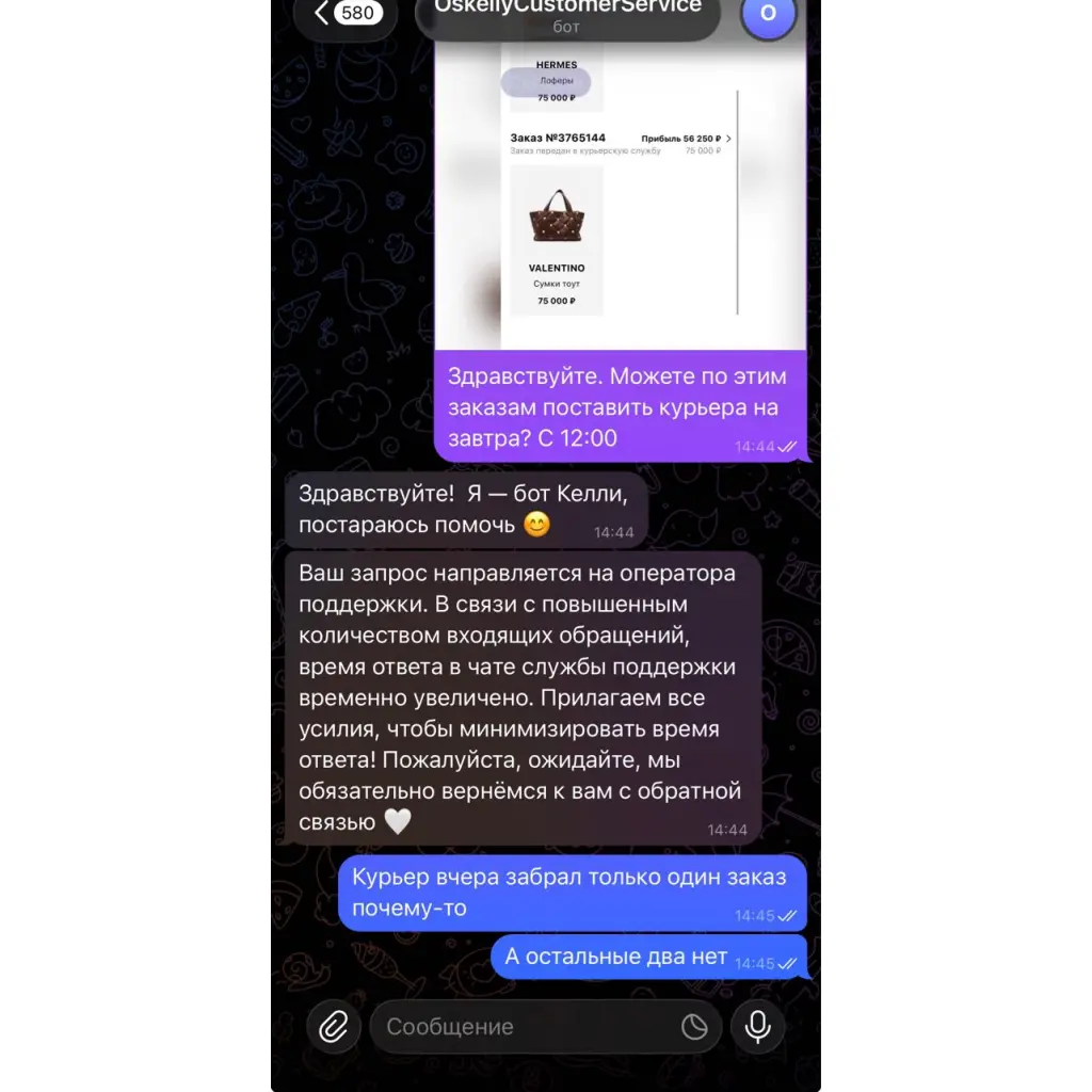 Добрый день. 15 января 26 я сделала и оплатила заказ у вас. До сих пор товар не отгружен. Поддержка оскелли говорит что вы не выходите на связь. Уточните вы планируете передать заказ и в какие сроки ?