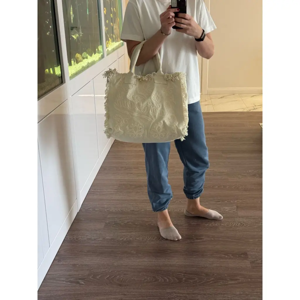 1 выезд в отпуске. Состояние отличное. Есть небольшое пятнышко. Можно постирать в стиральной машине или отдать в х/ч. С вышивкой. Сумка сверх вместительный ная. Проходит как ручная кладь в самолете. Высота 33 см, ширина 35 см, глубина 18 см