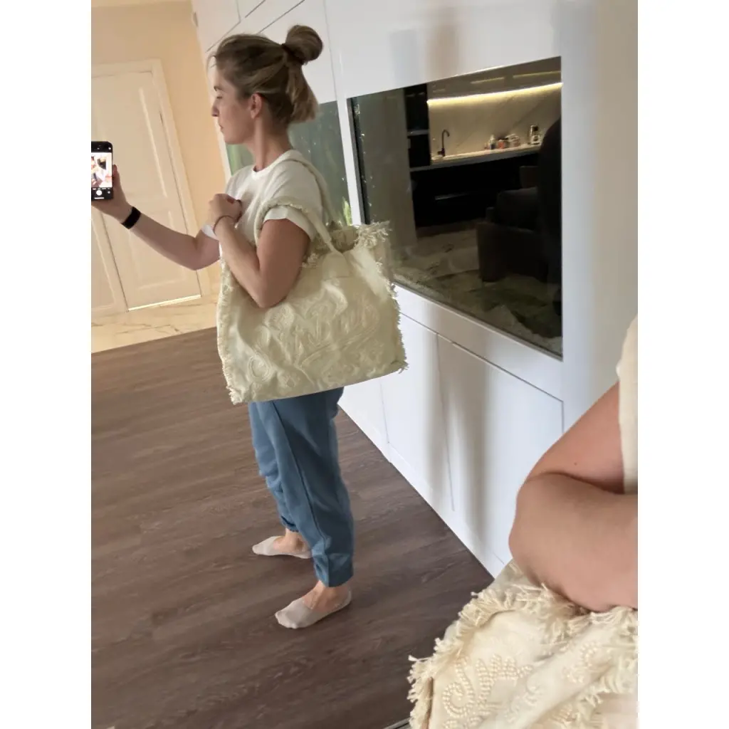 Бежевая льняная пляжная сумка