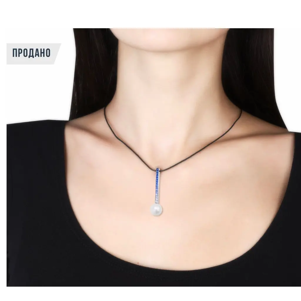 Оригинальное колье с жемчугом 10.74 мм., лейкосапфирами 0.48ct и сапфирами 1.56ct от всемирно известного бренда. Белое золото.