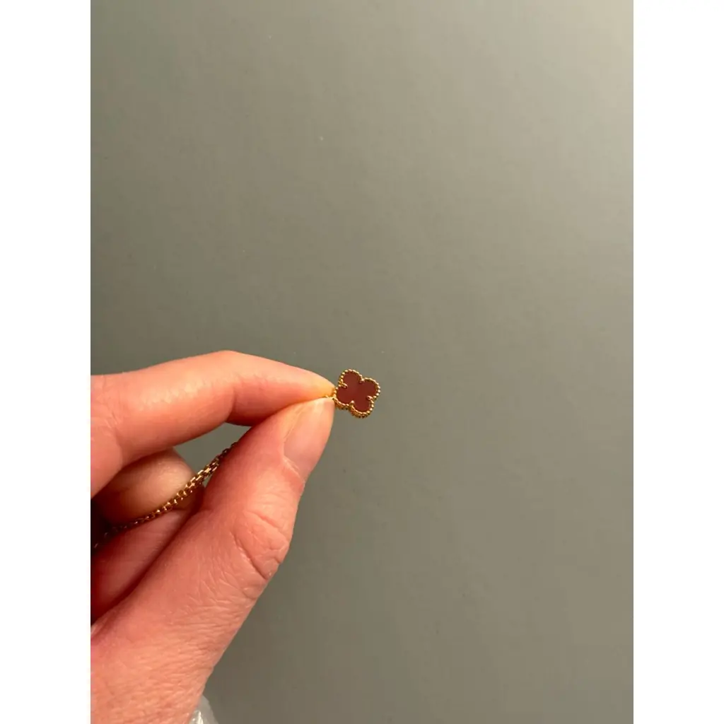 Подвеска на цепочке из коллекции Alhambra от Van Cleef Розовое золото + сердолик ❤️ Состояние идеальное В комплекте: белая коробочка, внутри которой коробка из замши, мешочек из замши для путешествий, сертификат Украшение приобреталось в ГУМе