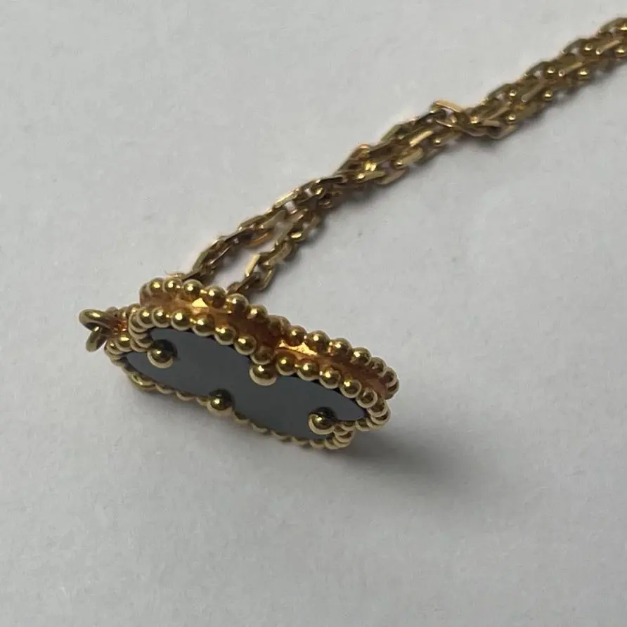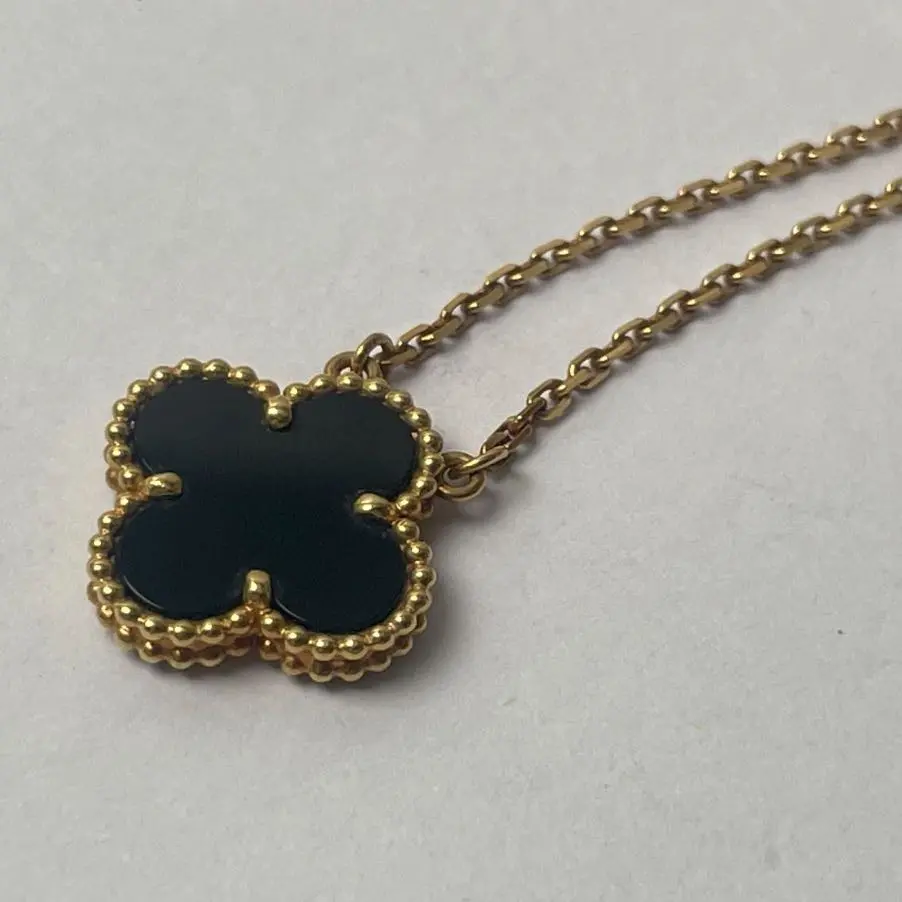 Vintage Alhambra Medium Single Flower Necklace Old Buckle 18K Gold/Onyx Necklace Gold