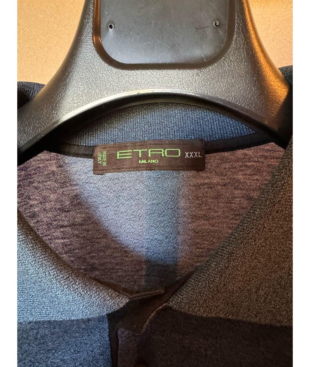 ETRO Темно-синее хлопковое поло с длинным рукавом