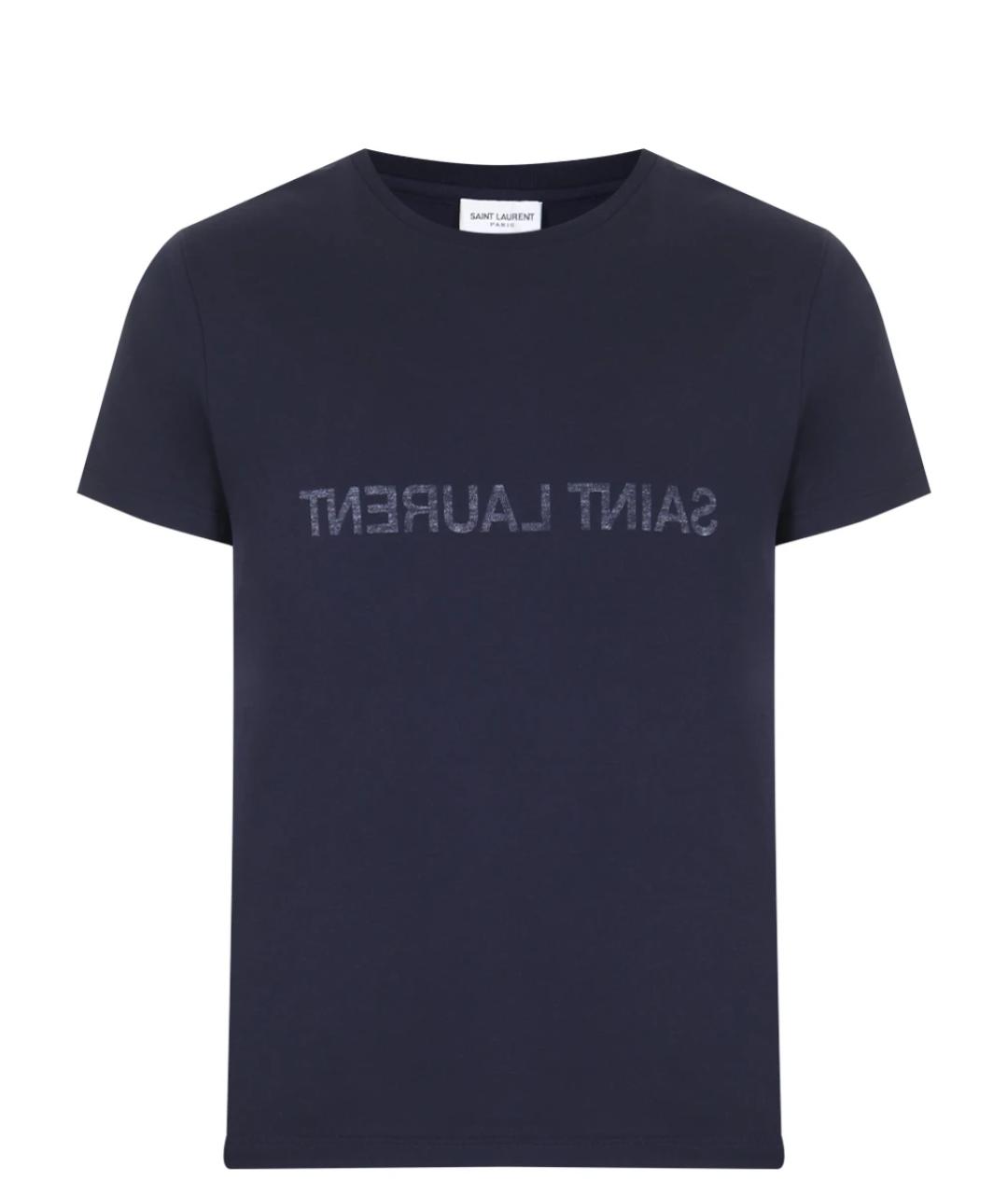 -Темно-синяя футболка из мягкого хлопка от SAINT LAURENT.