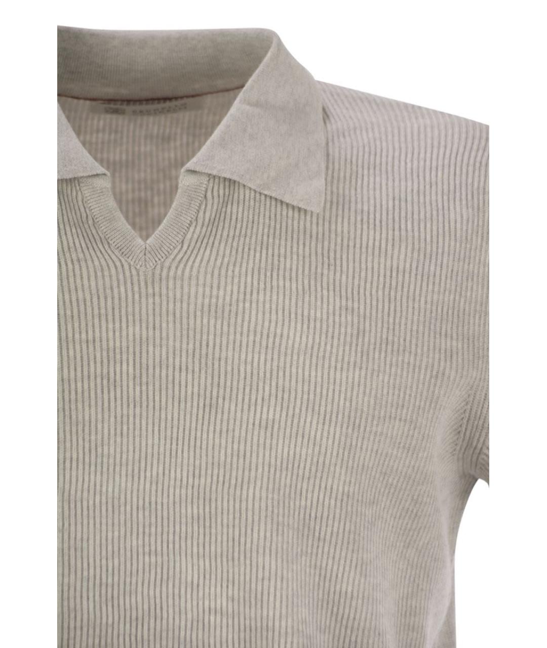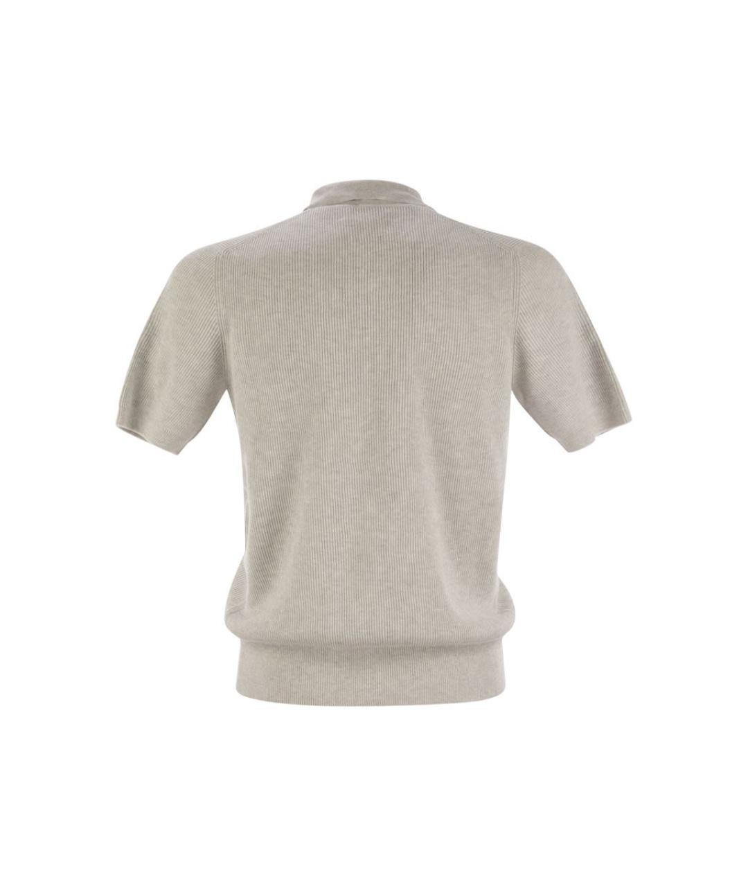 BRUNELLO CUCINELLI Серое хлопковое поло с коротким рукавом