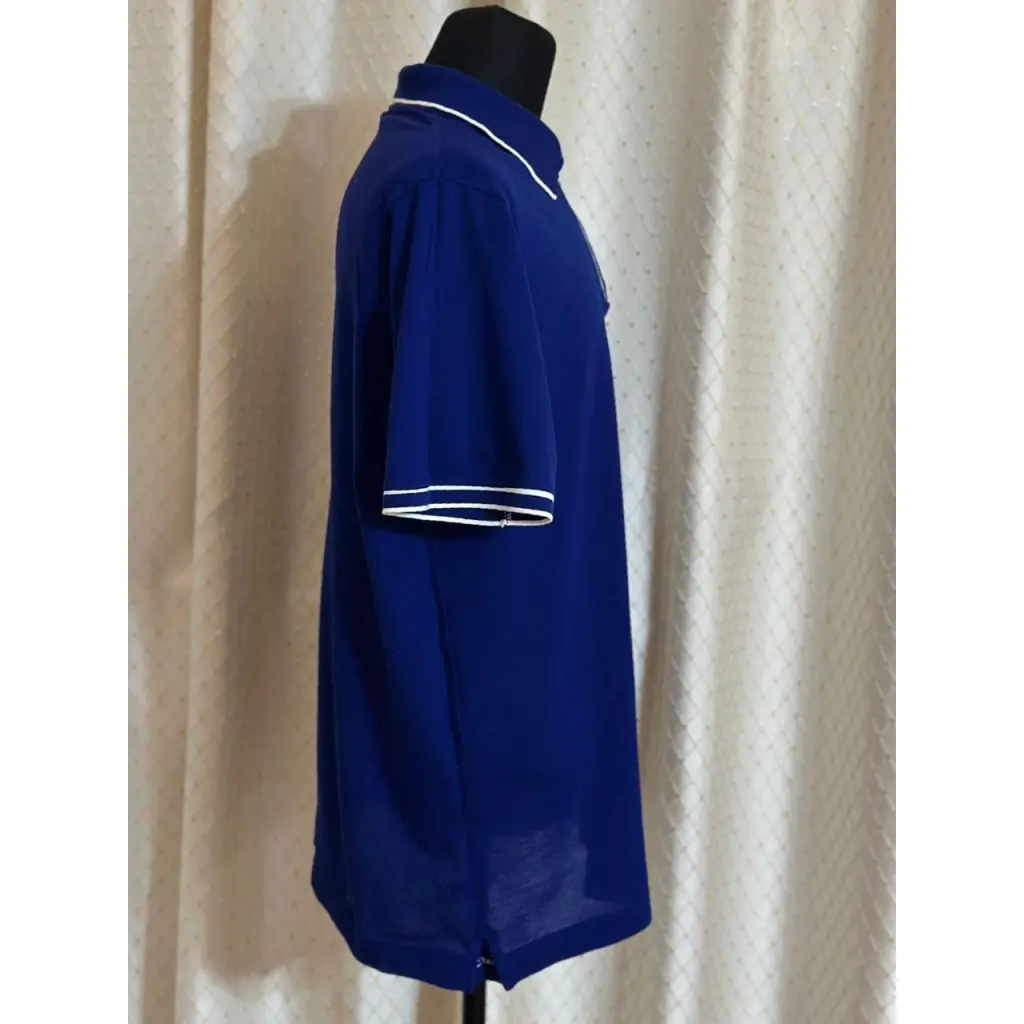 Синее поло с контрастной отделкой в узкую полоску органично впишется в повседневный образ и с потертыми джинсами, и со строгими брюками.