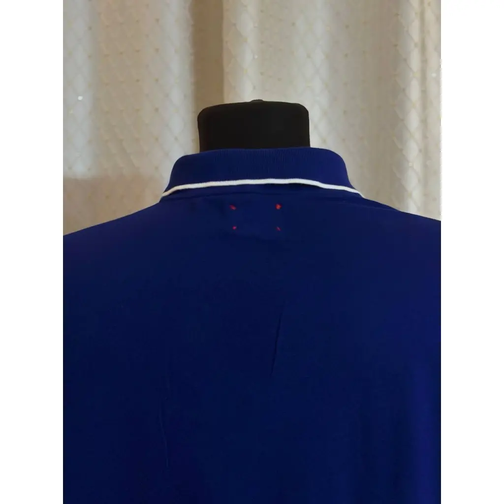 Синее поло с контрастной отделкой в узкую полоску органично впишется в повседневный образ и с потертыми джинсами, и со строгими брюками.