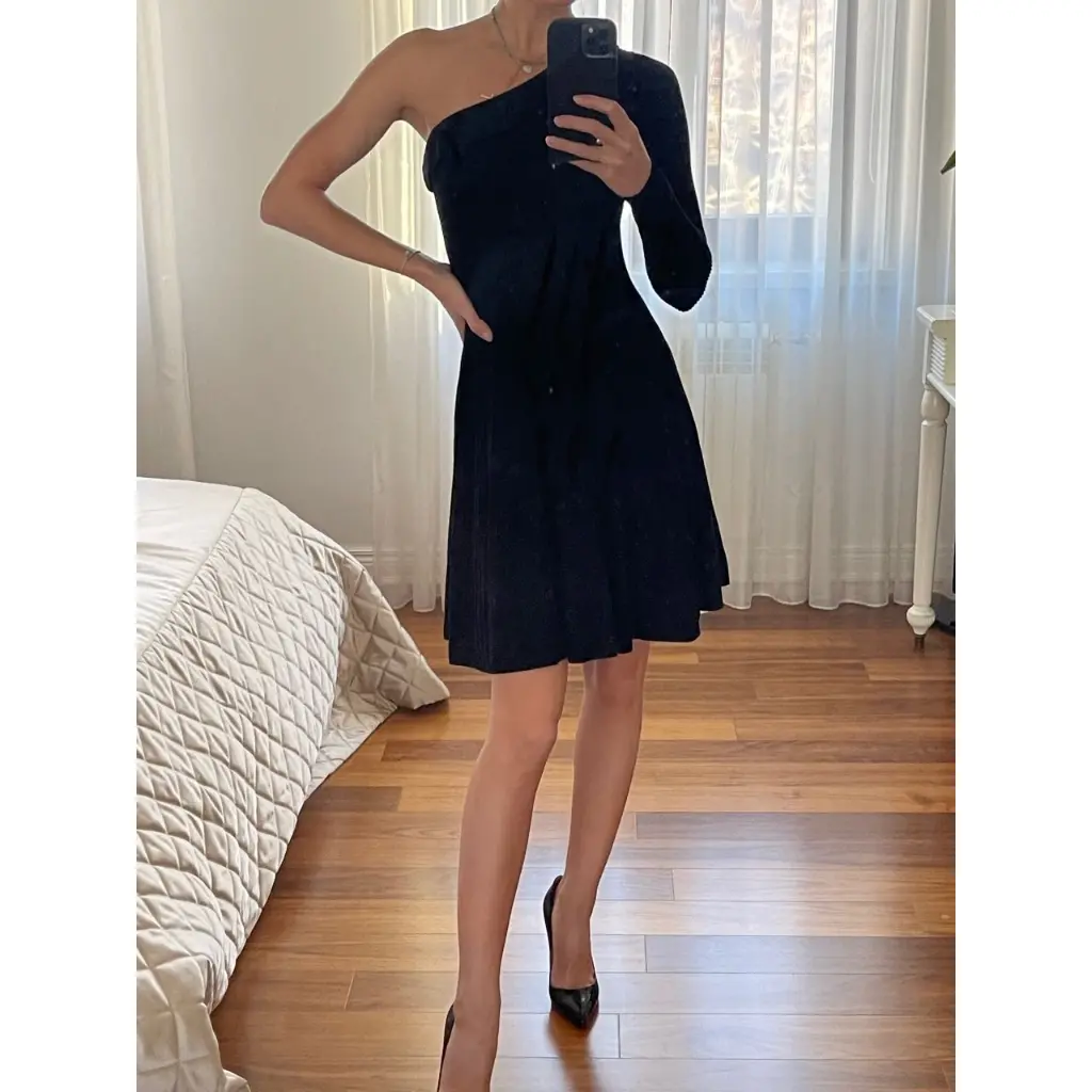Эффектное платье на одно плечо Max Mara. Отлично смотрится с поясом на талии или с белой рубашкой под платье. Размер S, но хорошо тянется