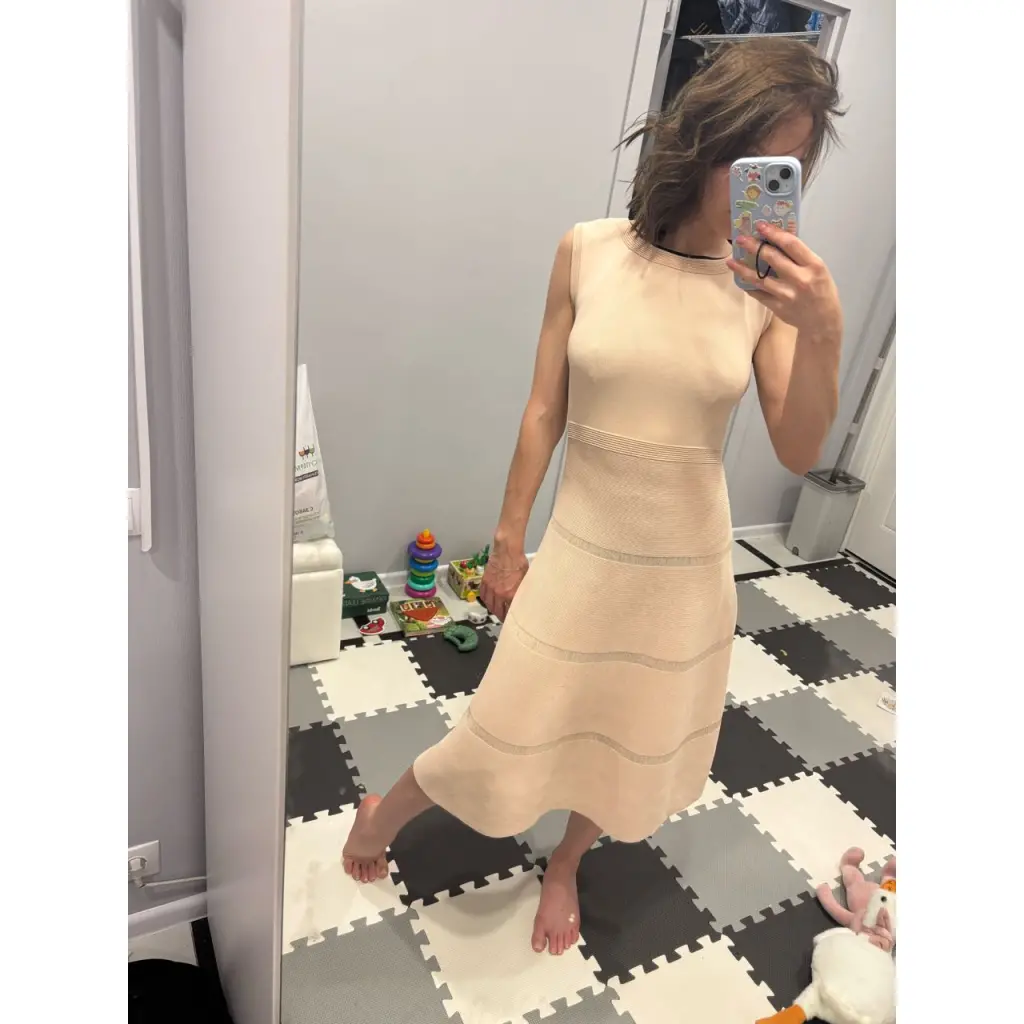 Нежно розовое платье Sandro. Размер 3 (подойдет на 42/44). Состав : 55% вискоза 43% полиамид 3% эластан. Ткань эластичная.