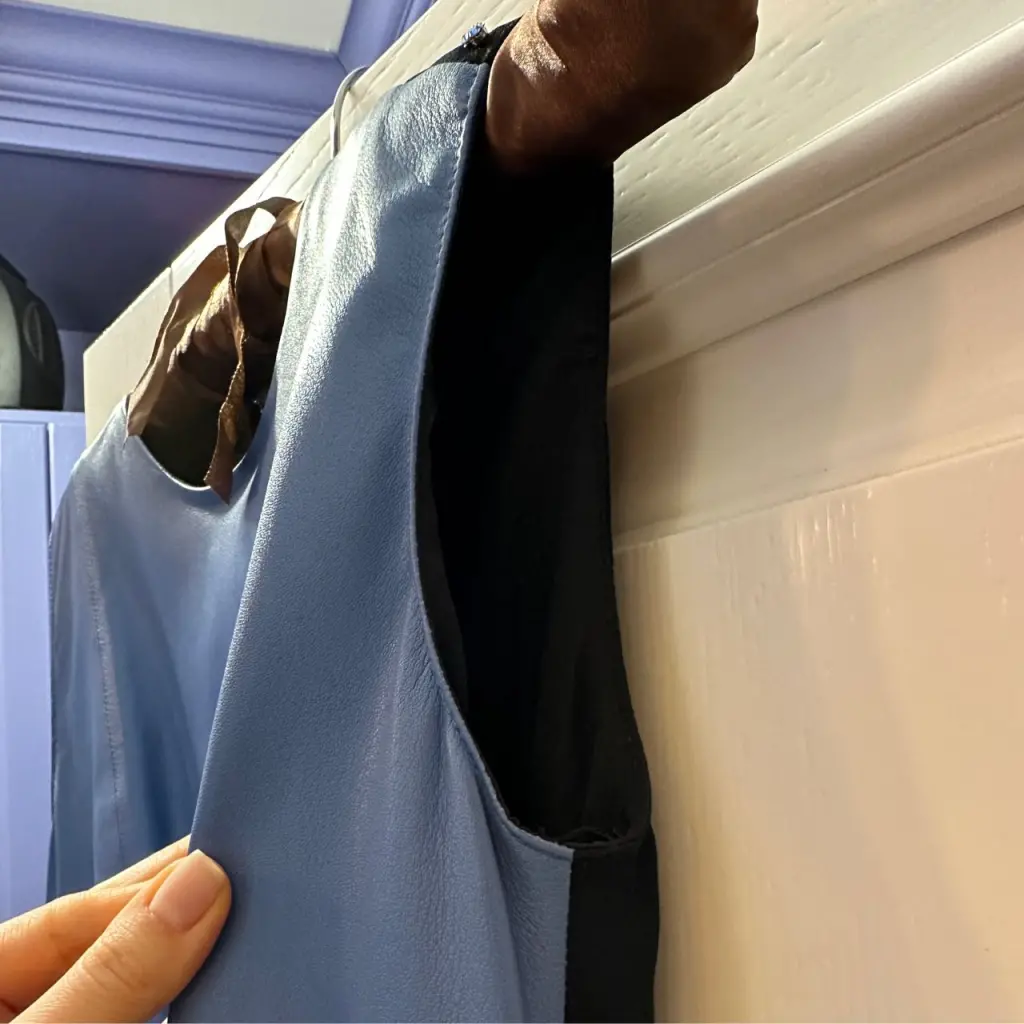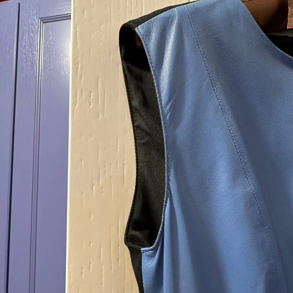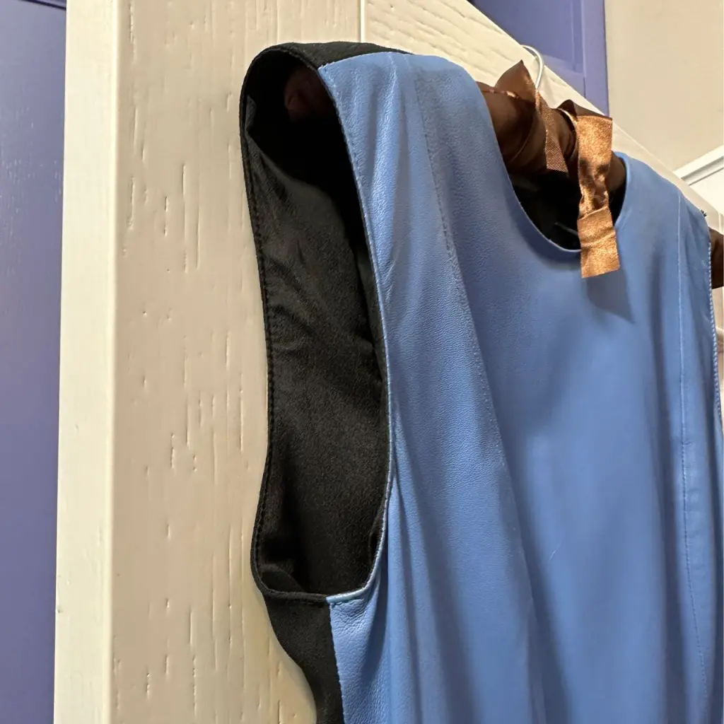 Голубое кожаное платье с чёрными вставками из ткани. Вещь в отличном состоянии, носилась немного и очень аккуратно. Платье можно носить как в тёплое время, так и зимой с водолазкой и сапогами. Могу сделать любые дополнительные фотографии.