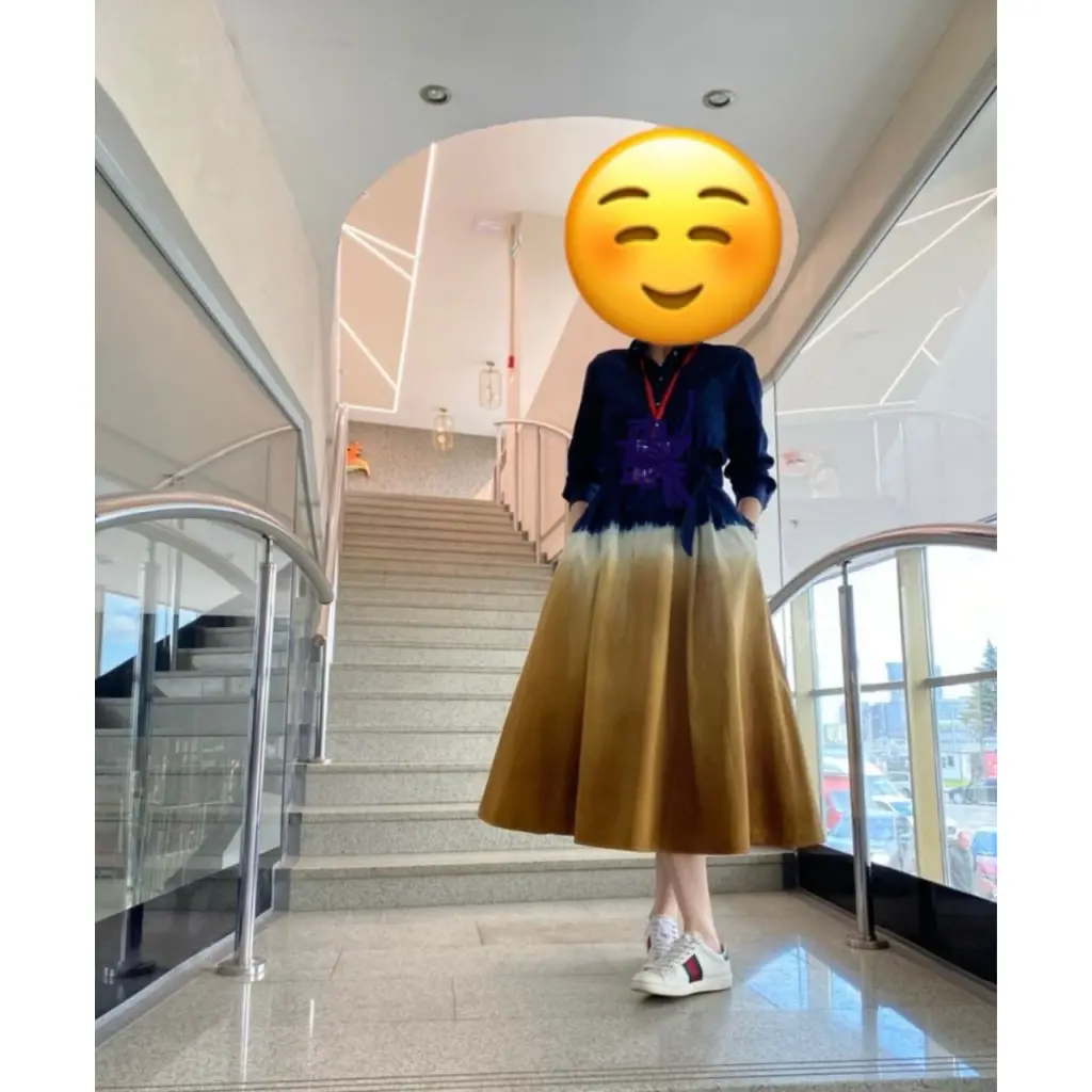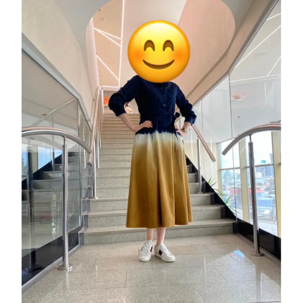 Отличное джинсовое платье с красивым переходом цвета из синего в горчичный. Этикетка срезана, посколько можно стирать