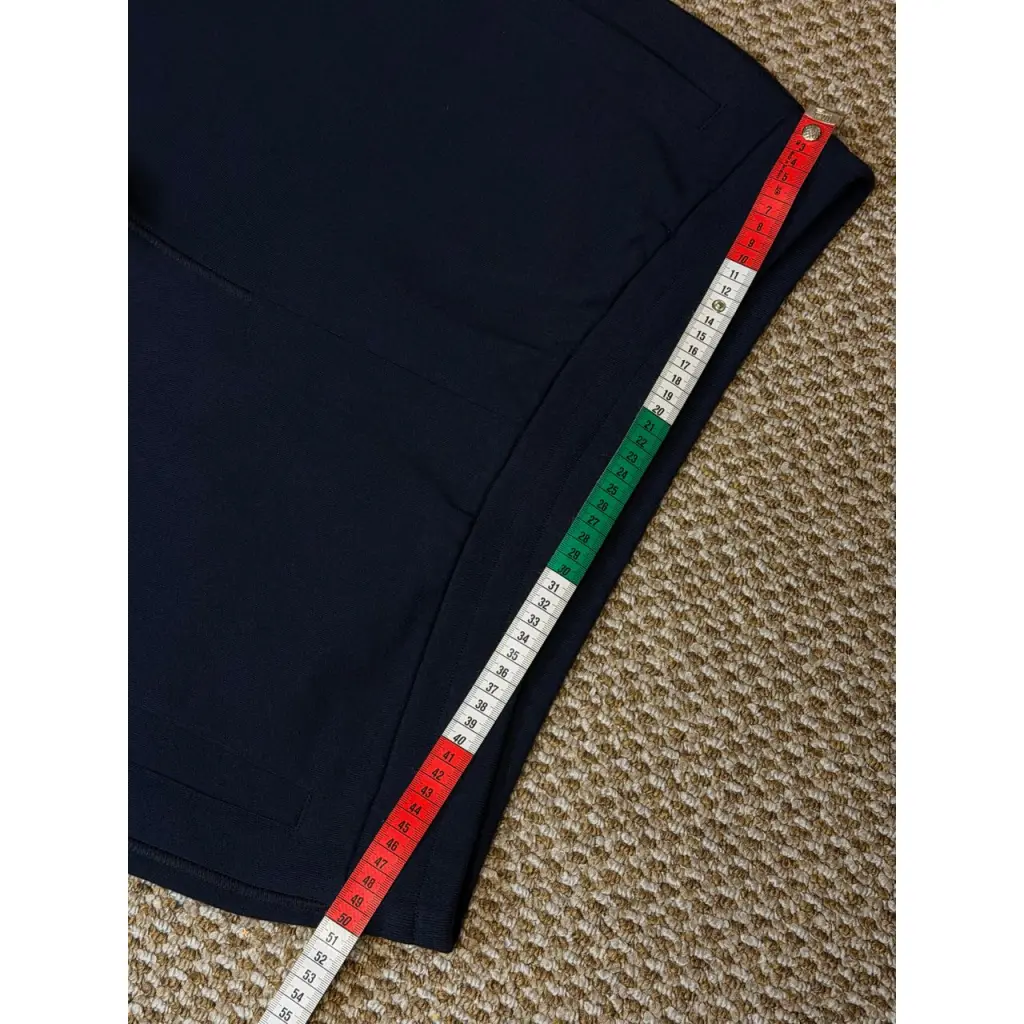 осенне-зимней коллекции нашлось место не только строгим моделям с намеком на неформальность, но и полностью расслабленным вариантам. Среди них - темно-синие брюки с широким эластичным поясом.