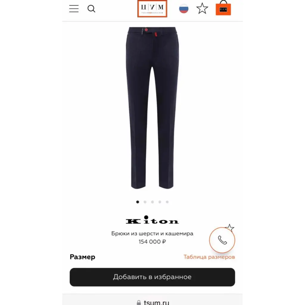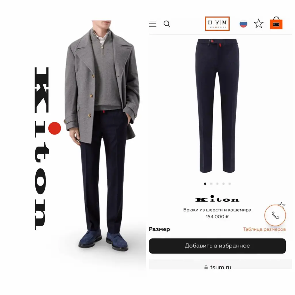 ЦЕНА В ЦУМ 154.000₽ Брюки kiton