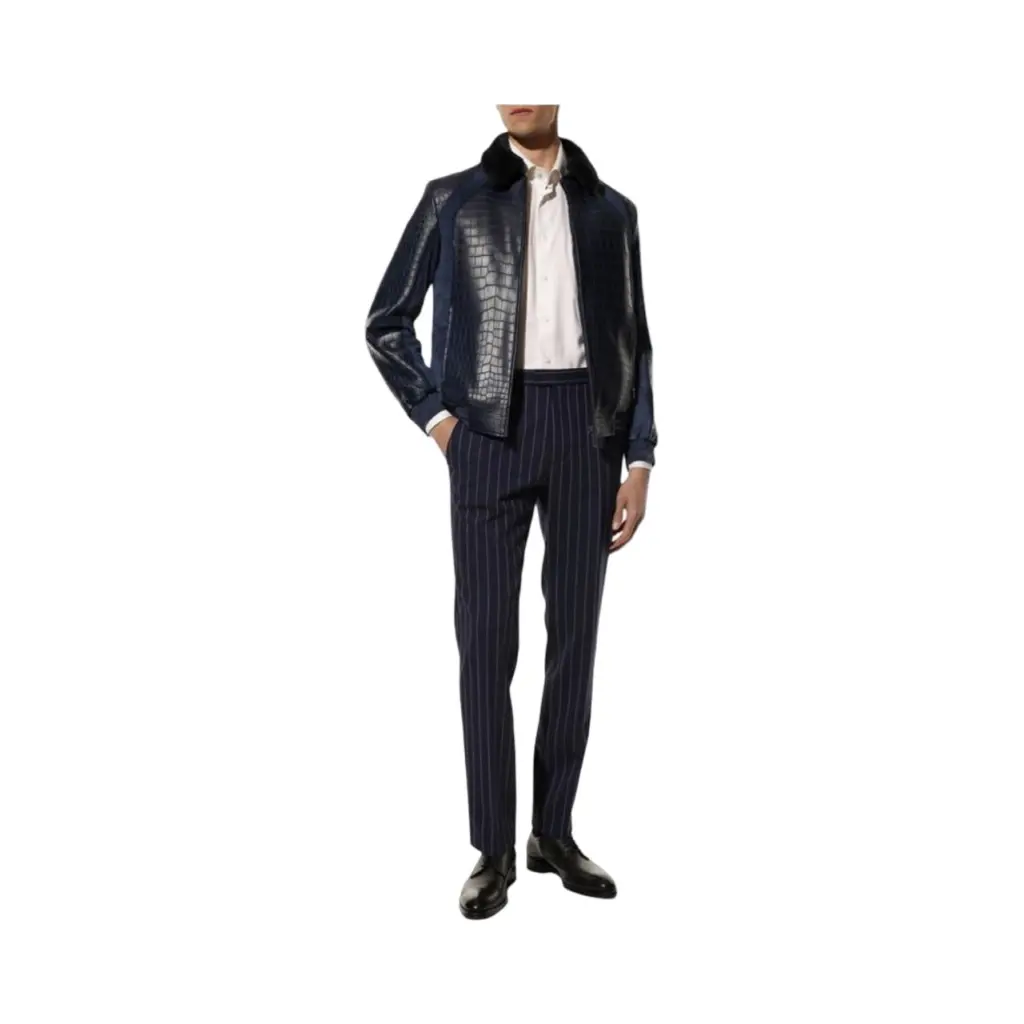 Темно-синие брюки в узкую, словно нарисованную мелом полоску освежат офисный наряд или образ в стиле smart casual. Модель с классической посадкой сшили из хлопкового твила, в состав которого добавили дышащий лен и мягкую шерсть. Ральф Лорен включил лаконичное изделие в коллекцию