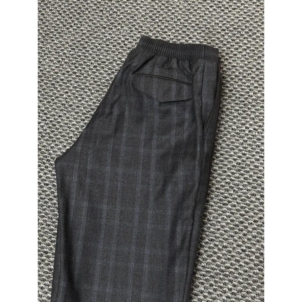 за основу этих серых брюк взяли классическую модель из клетчатой шерсти, но сделали ее расслабленнее. это отличная инвестиция в повседневный гардероб — они подходят для создания спокойного образа.