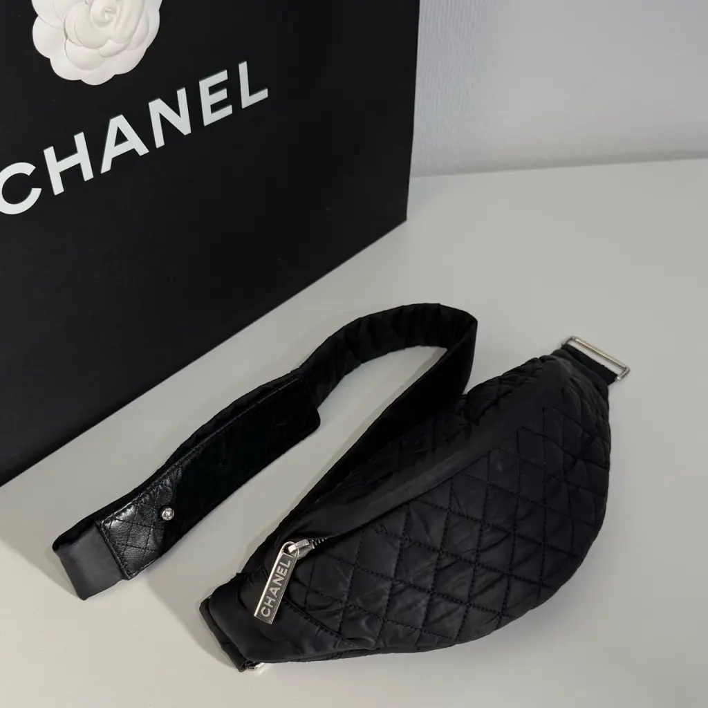 Эта поясная сумка Chanel сочетает в себе практичность и культовую элегантность. Изготовленная из прочного стеганого нейлонового холста и украшенная серебристой фурнитурой, эта шикарная поясная сумка идеально подходит для удобства использования без использования рук, сохраняя при этом вечную изысканность Chanel.