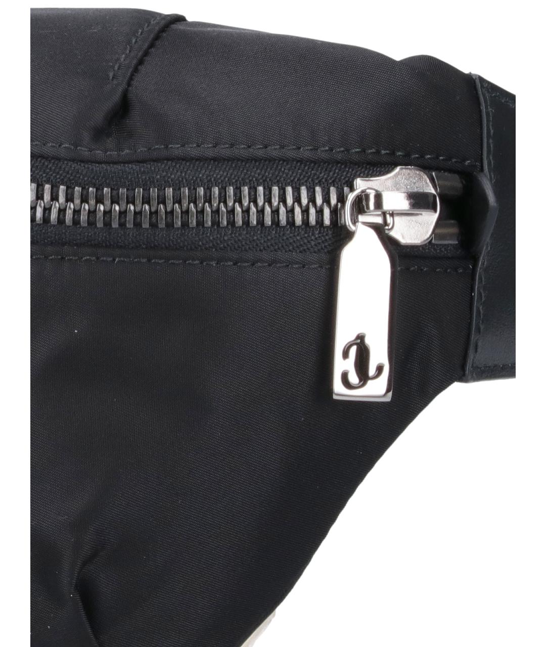 Marsupio "Finsley" Jimmy Choo, in nylon nero, tracolla regolabile, chiusura zip, ricamo logo bianco fronte, una tasca zip retro, uno scomparto interno principale.