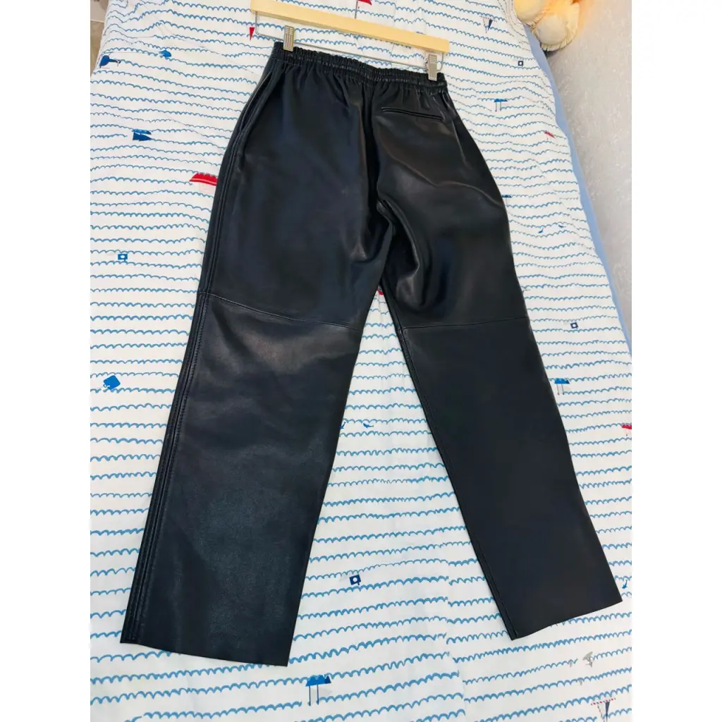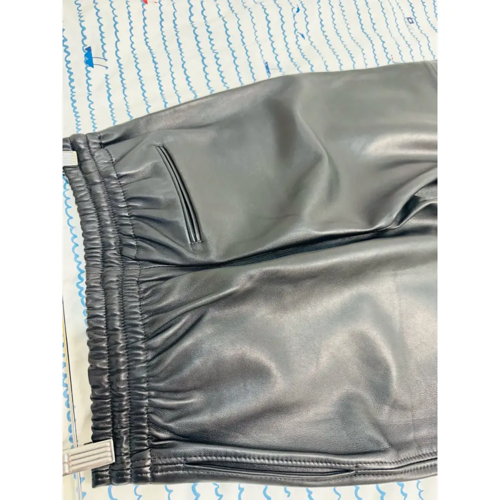 кожаные брюки на резинке черные 12STOREEZ, в размере XS. Талия 32-40 см в полуобхвате, резинка тянется. Бедра 52 см