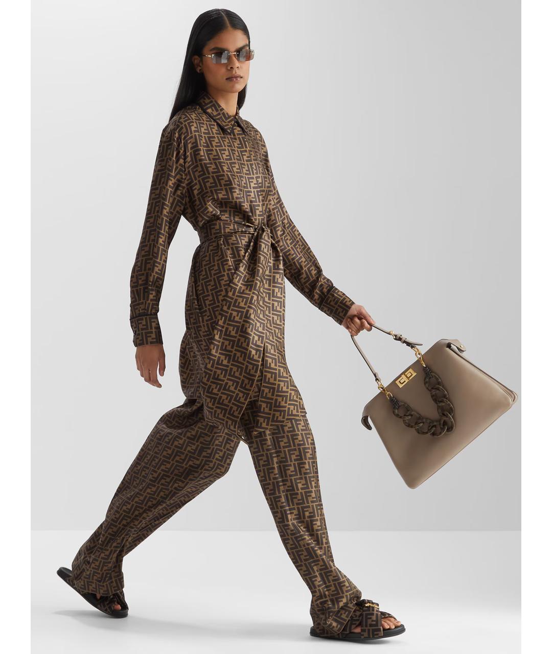 FENDI Коричневые шелковые прямые брюки