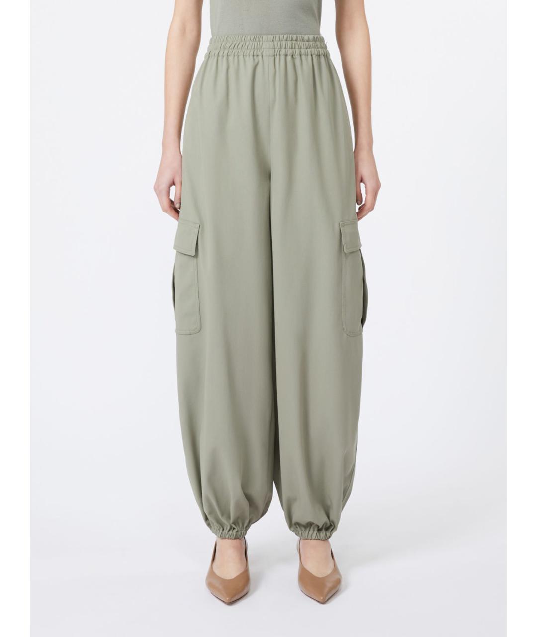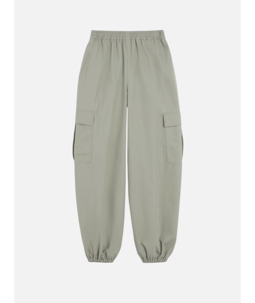 Wide trousers made of pure cotton twill, high-waisted with elastic inserts at the ankles. Inset pockets on the hips and cargo pockets with flaps. Elastic waist and Max Mara logo embroidered on the left pocket.