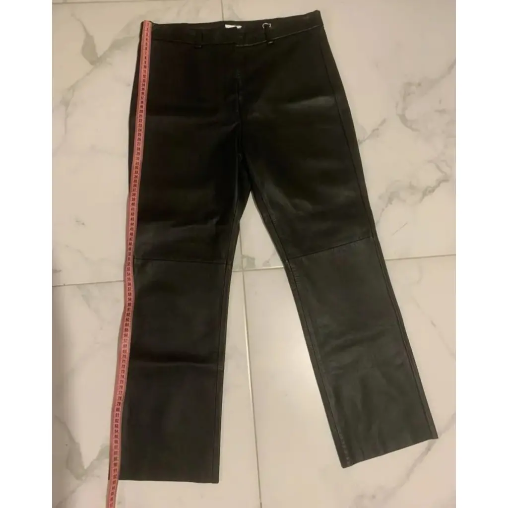 Черные кожаные прямые брюки