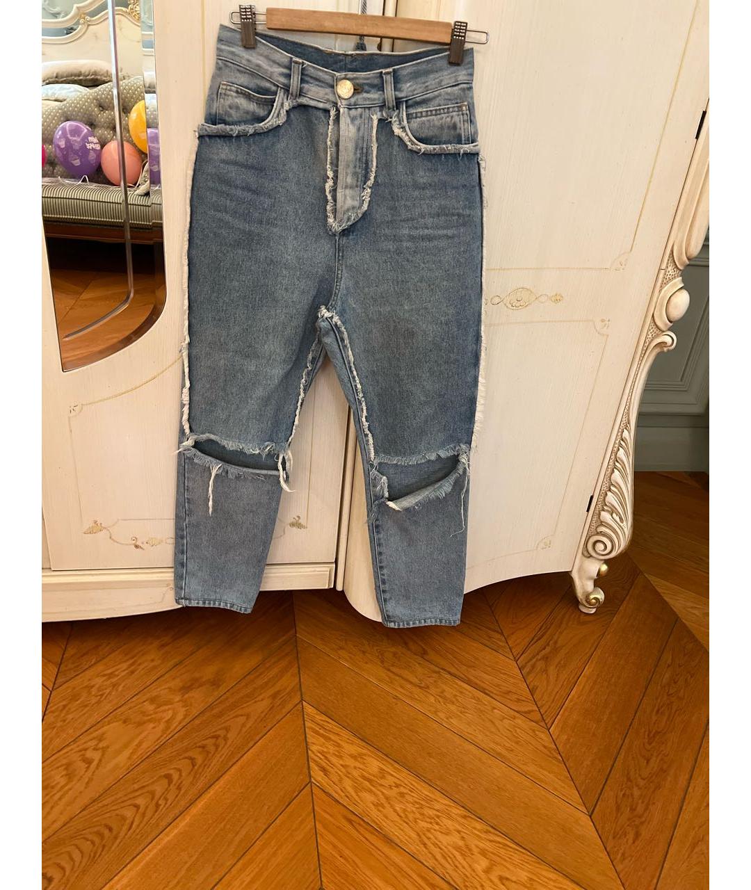 BALMAIN Голубые хлопко-эластановые прямые джинсы