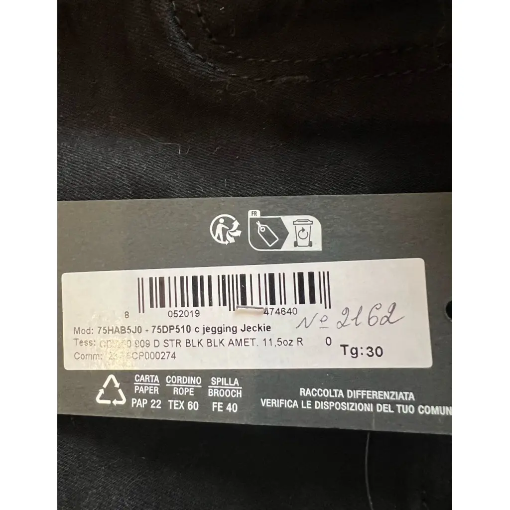 Riesce a farmi la foto del etichetta con cui è scritto la taglia 30 del jeans? Mi può mandare anche una foto della parte dietro del jeans che si vedano le tasche senza un etichettta che la copre. Attendo una sua risposta. Grazie