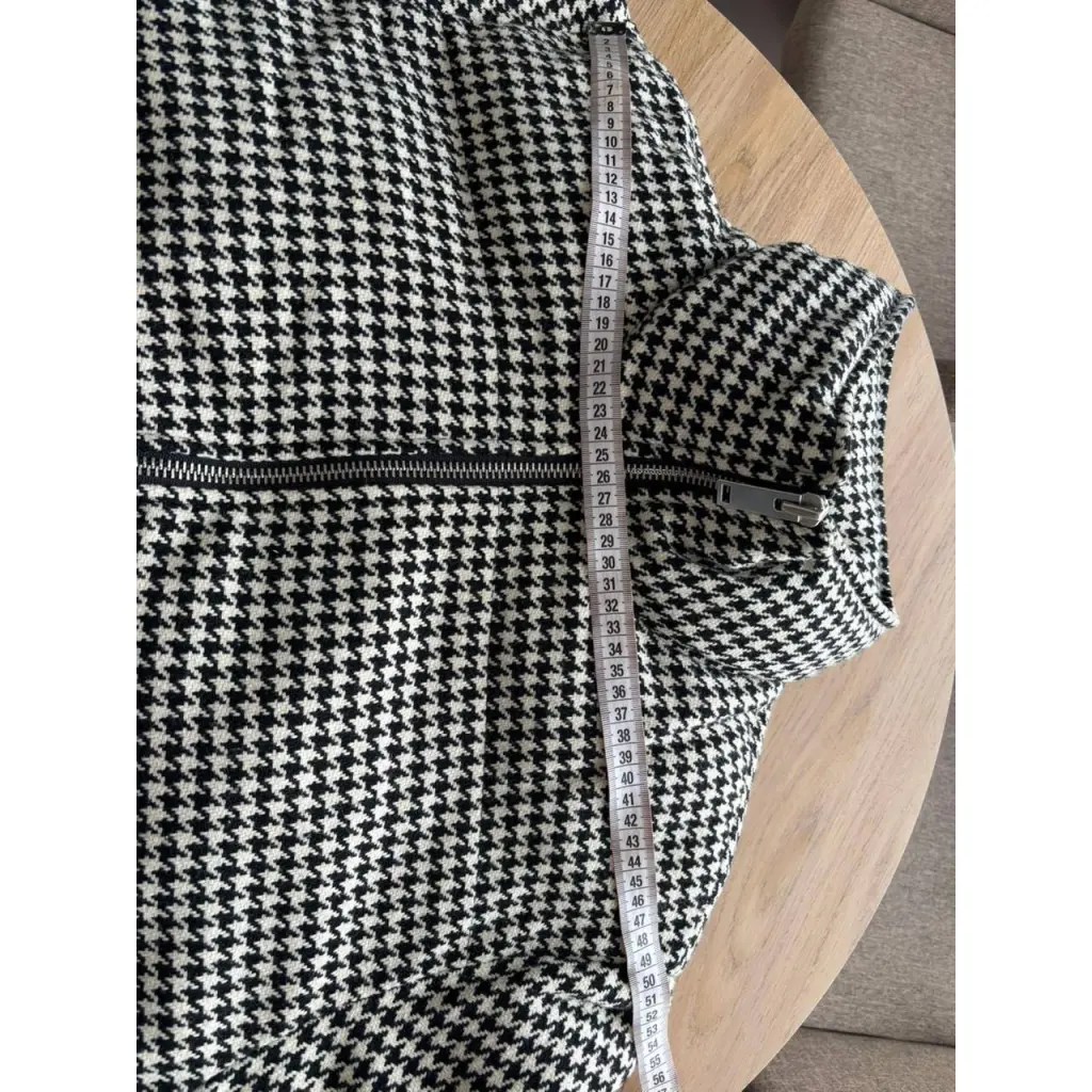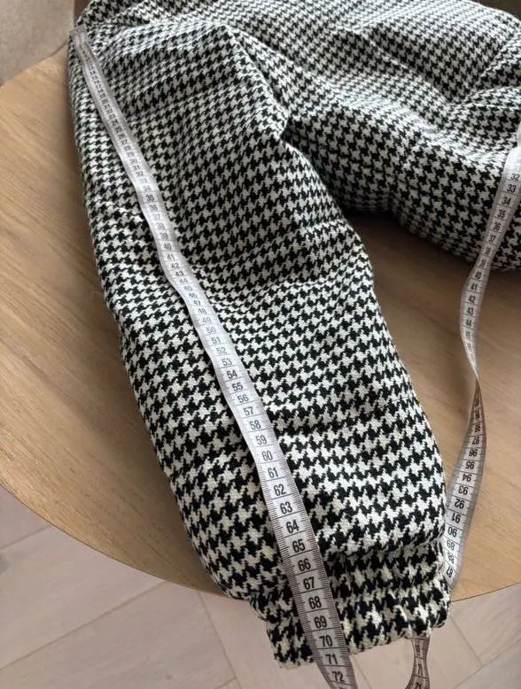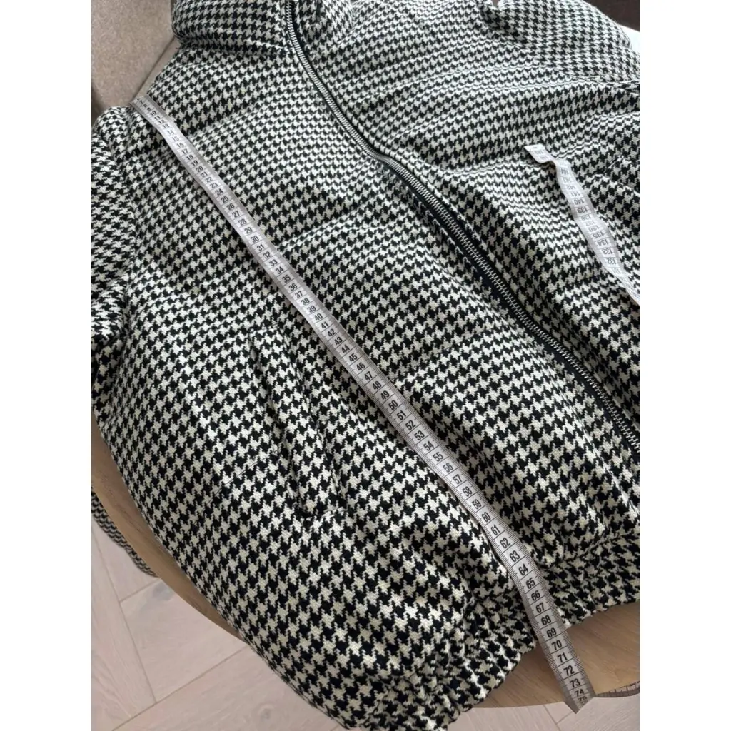 Узор «гусиная лапка», застежка-молния спереди, утепленные длинные рукава, прорезные карманы по бокам, эластичные манжеты и эластичный подол.