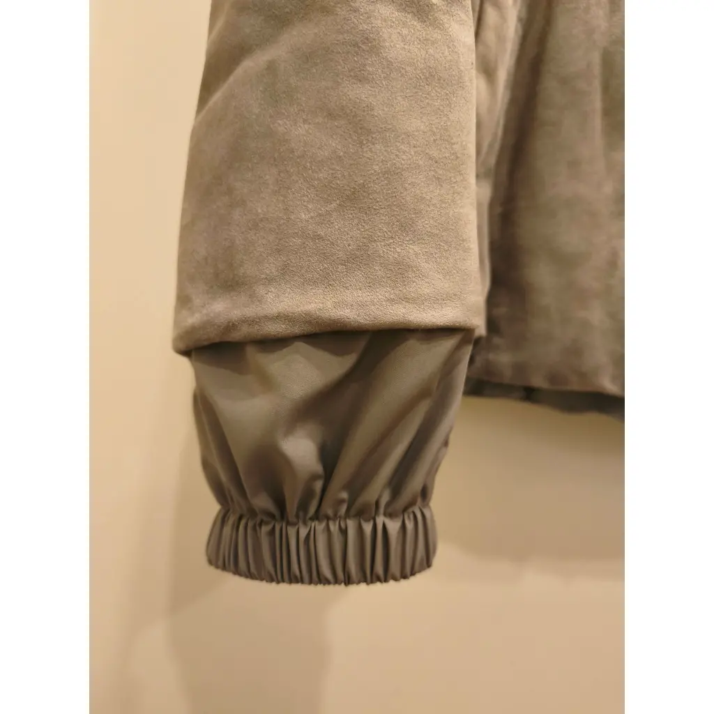Легкий пуховик из натуральной тонкой замши,цвет светлый,оливково-серый,подкладка хлопок,маркировка 44,подойдет на 42-44,на невысокий рост(до 162 см),по груди-53 см,по центру спины 55 см,глубокий уютный капюшон,в использовании одну зиму,но т к замша достаточно светлая(чуть светлее,чем на фото),возможно требуется химчистка