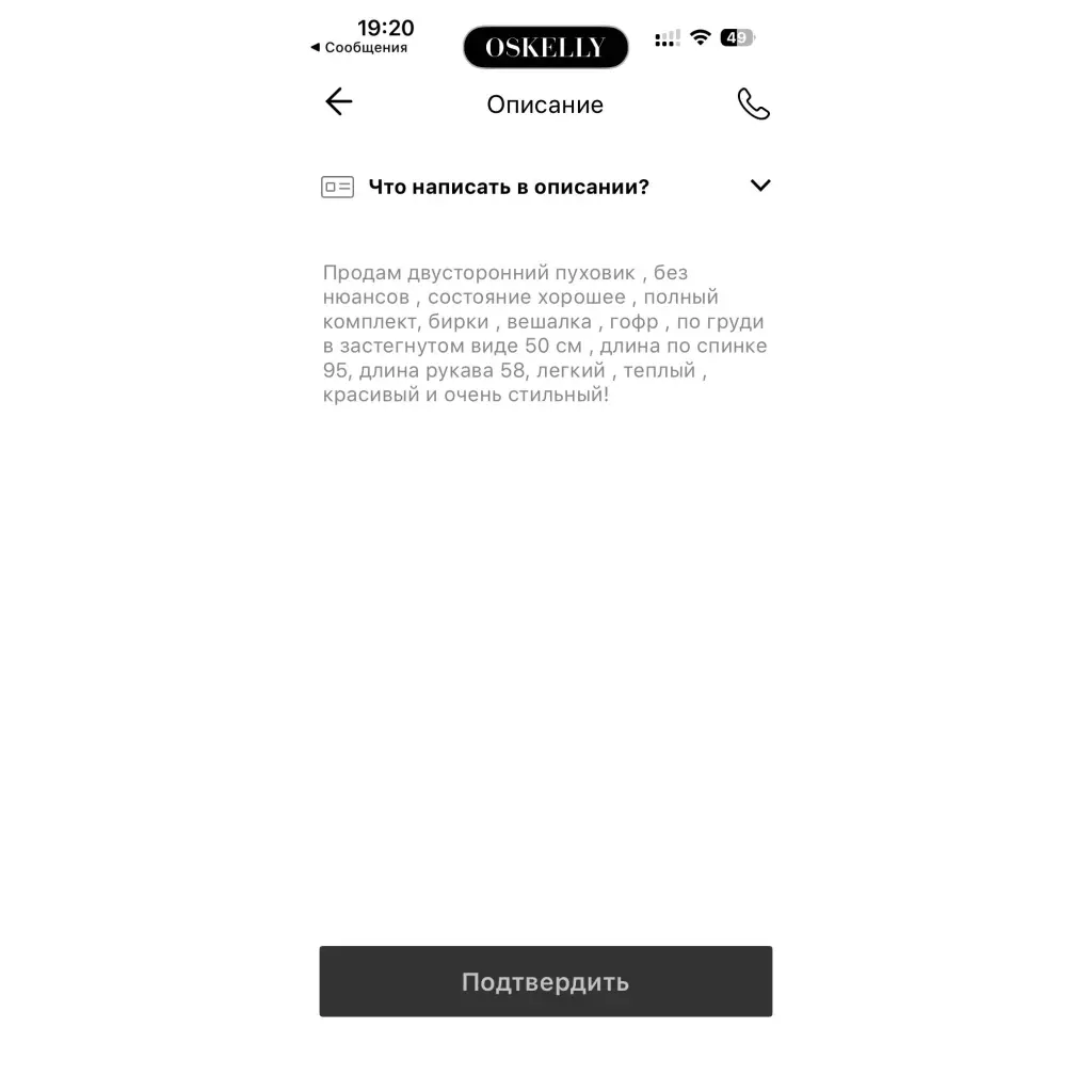 Каждый заказ проходит проверку подлинности в офисе Oskelly