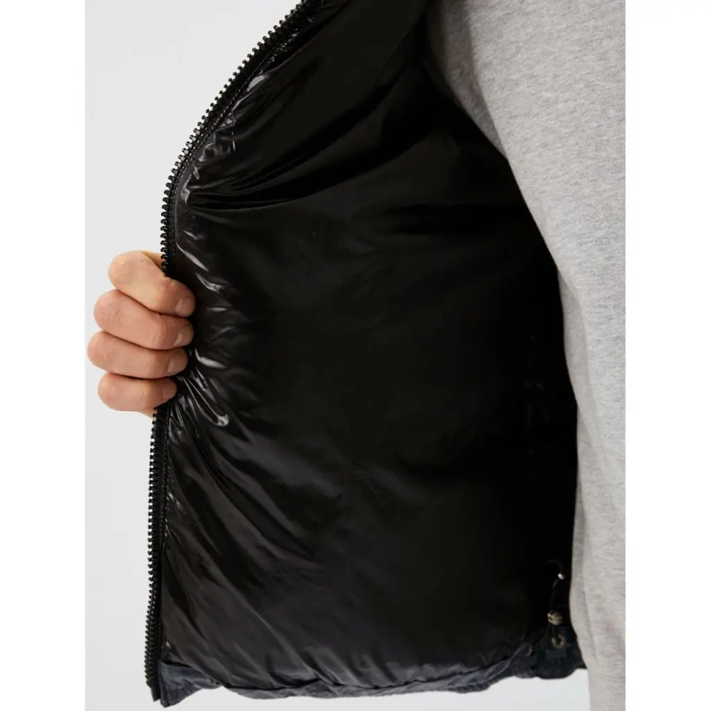 Состав: натуральный пух - 85%, натуральное перо - 15%. Снаружи стеганный полиамид. Подклад - качественный нейлон.