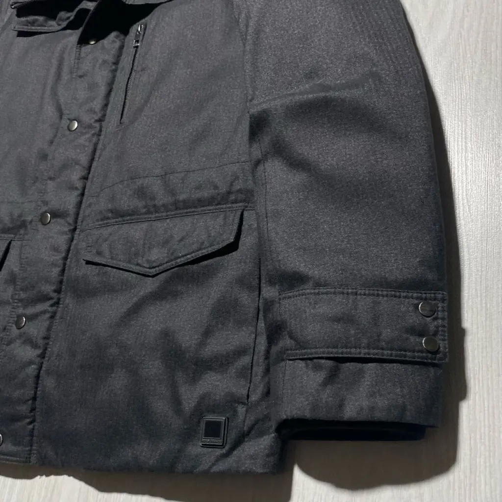мужской пуховик HUGO BOSS ORANGE размер 52, L - XL, темно-серый цвет наполнитель : утиный пух/перо интересный дизайн, логотип снизу состояние отличное, дефектов нет