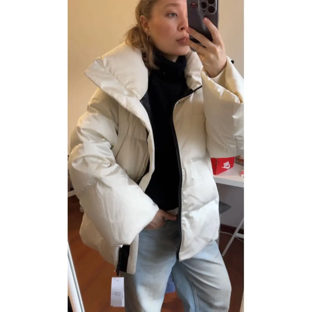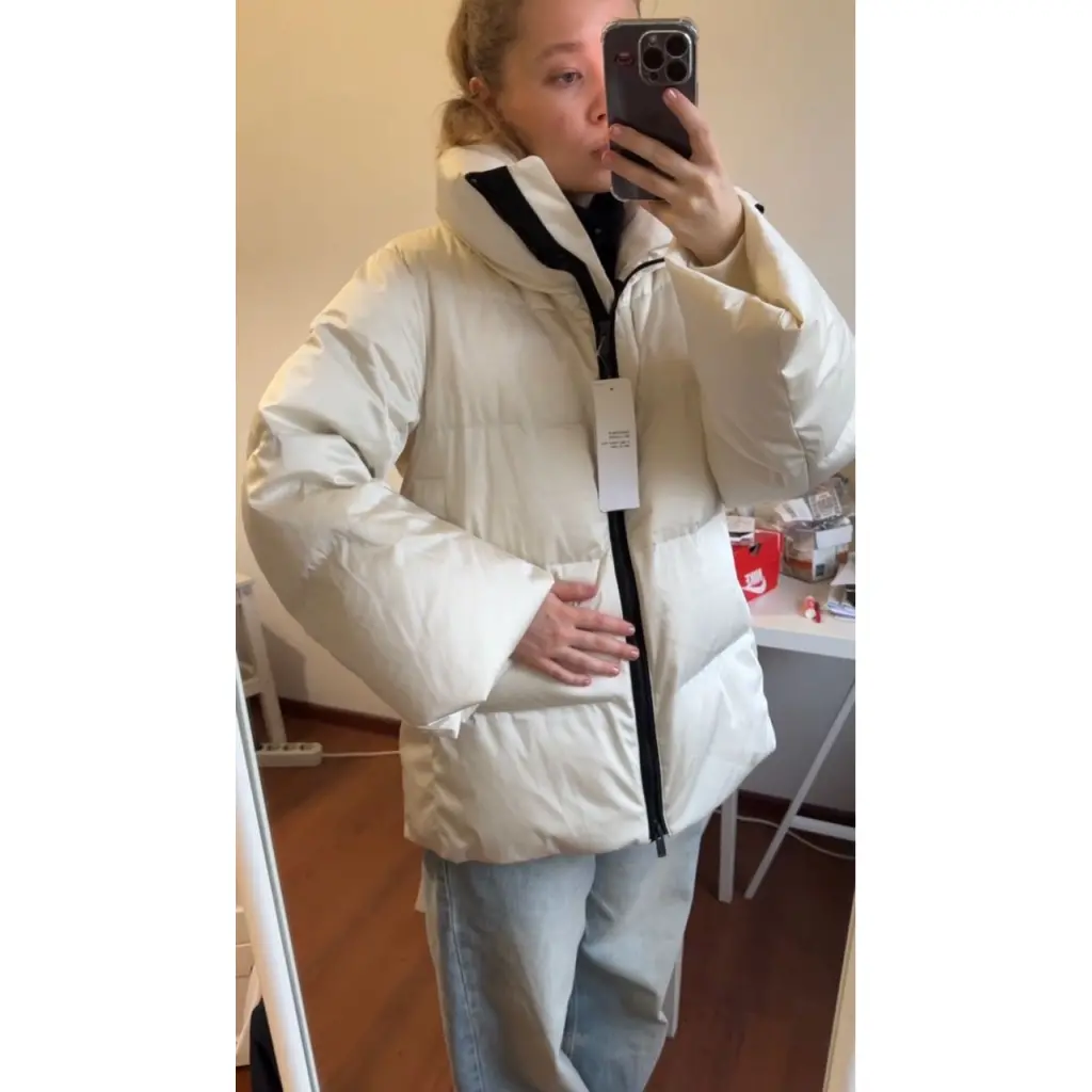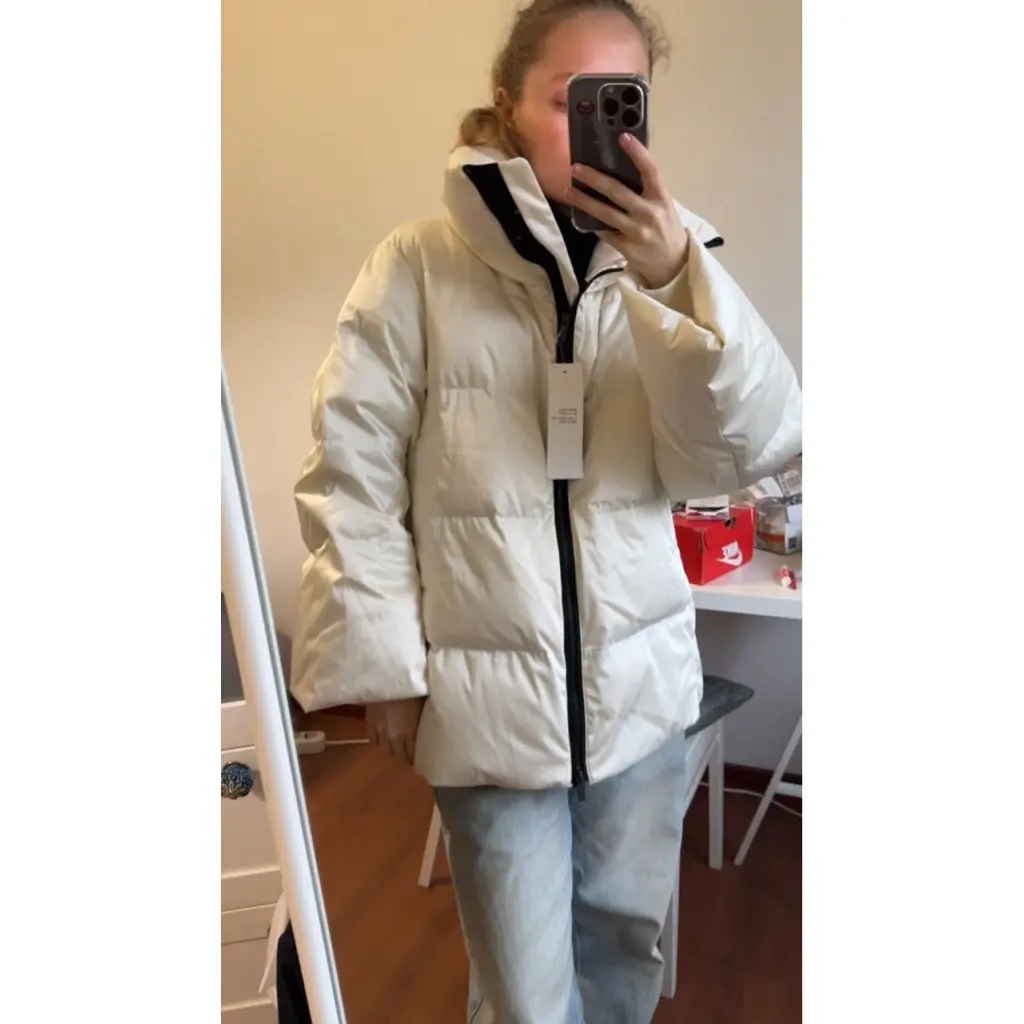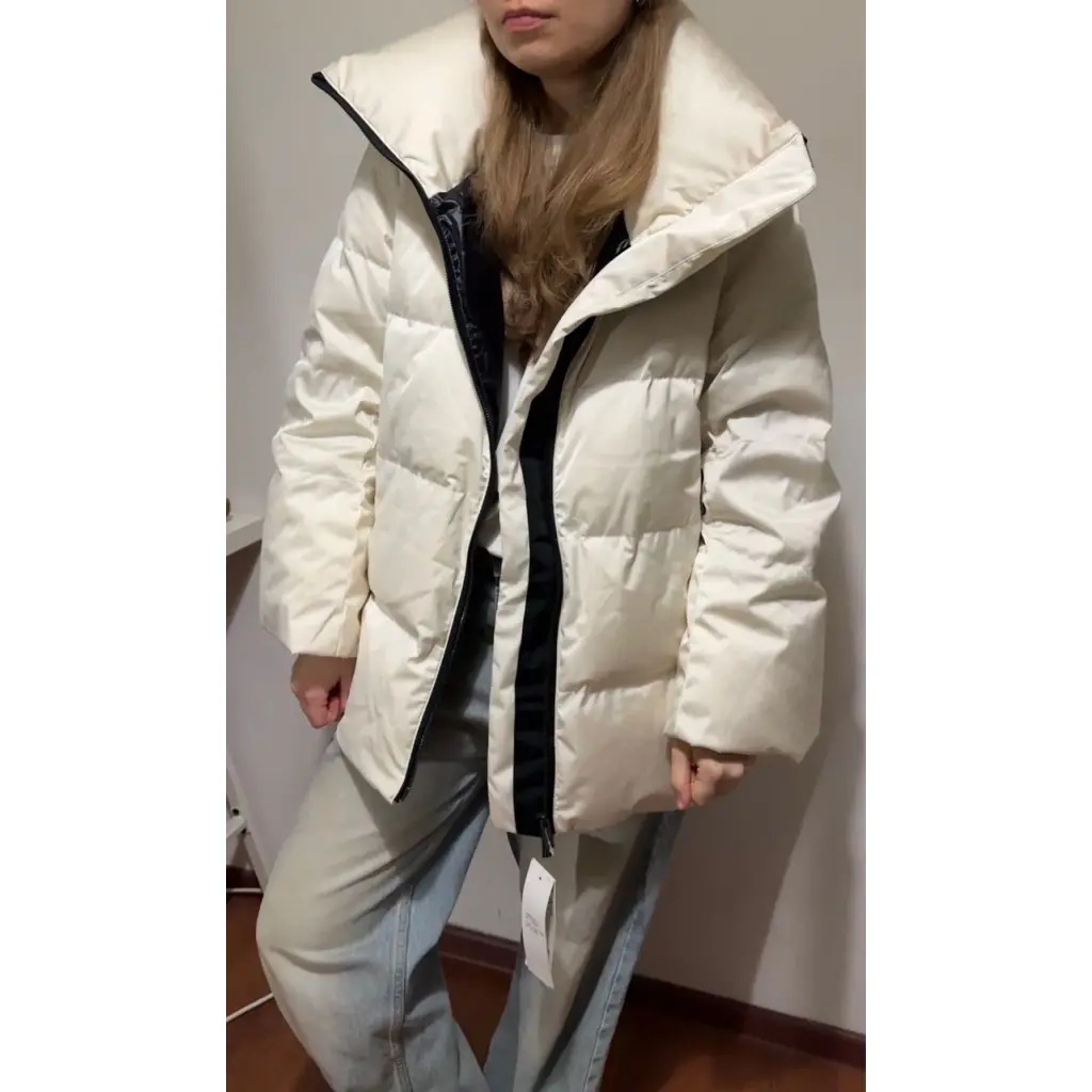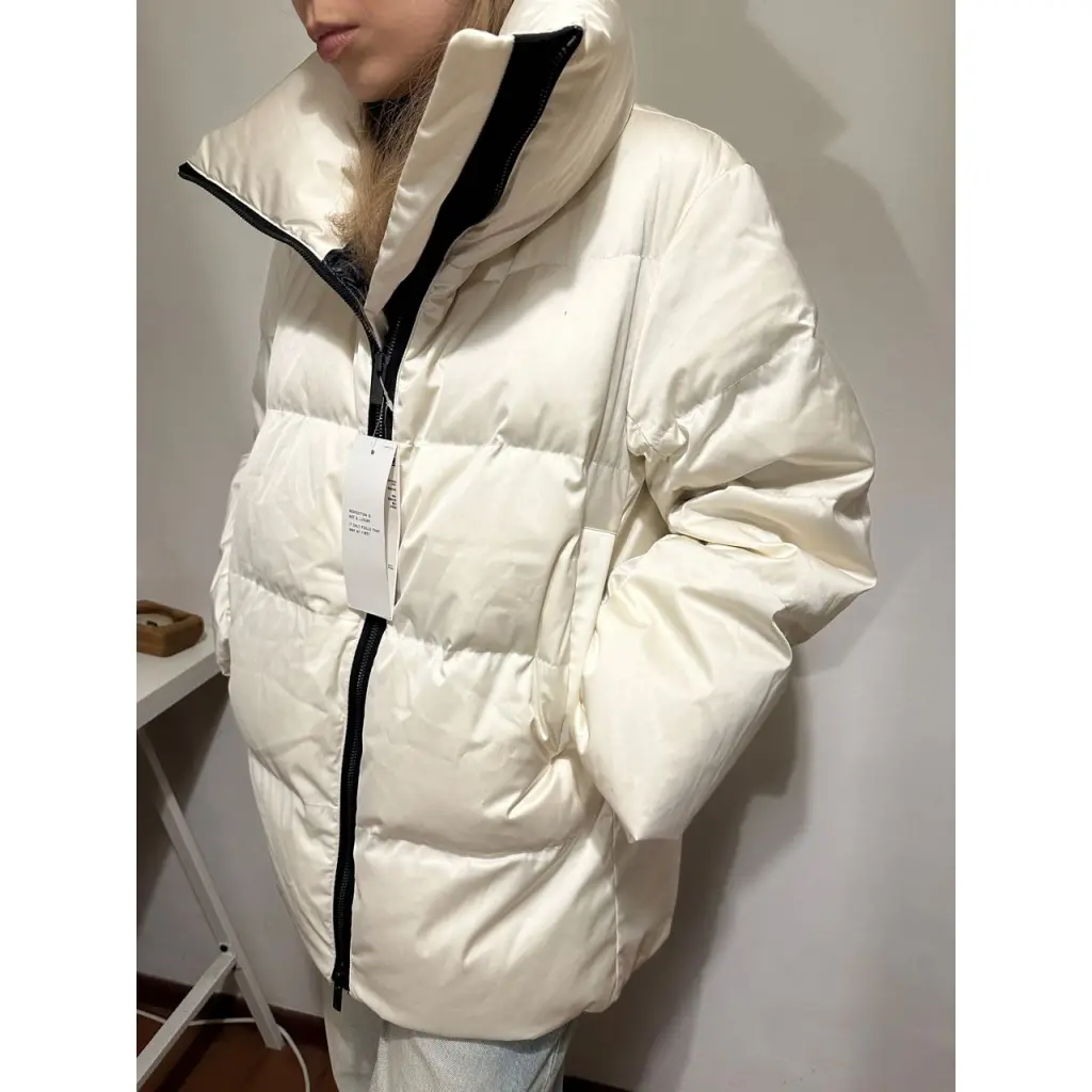Всеми известный пуховик из коллаборации Uniqlo и Jil Sander, в сливочно-кремовом оттенке, абсолютно новый, с бирками, универсальный по крою, отлично будет смотреться с меховой гаржеткой.