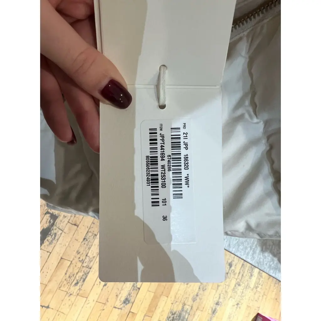 Кремовый стеганый пуховик с объемным капюшоном и двумя врезными карманами сшит из гладкого матового нейлона. Однотонная куртка из осенне-зимней коллекции марки, основанной Джил Сандер, утеплена слоем отборного гусиного пуха, который отлично держит тепло и не утяжеляет изделие.